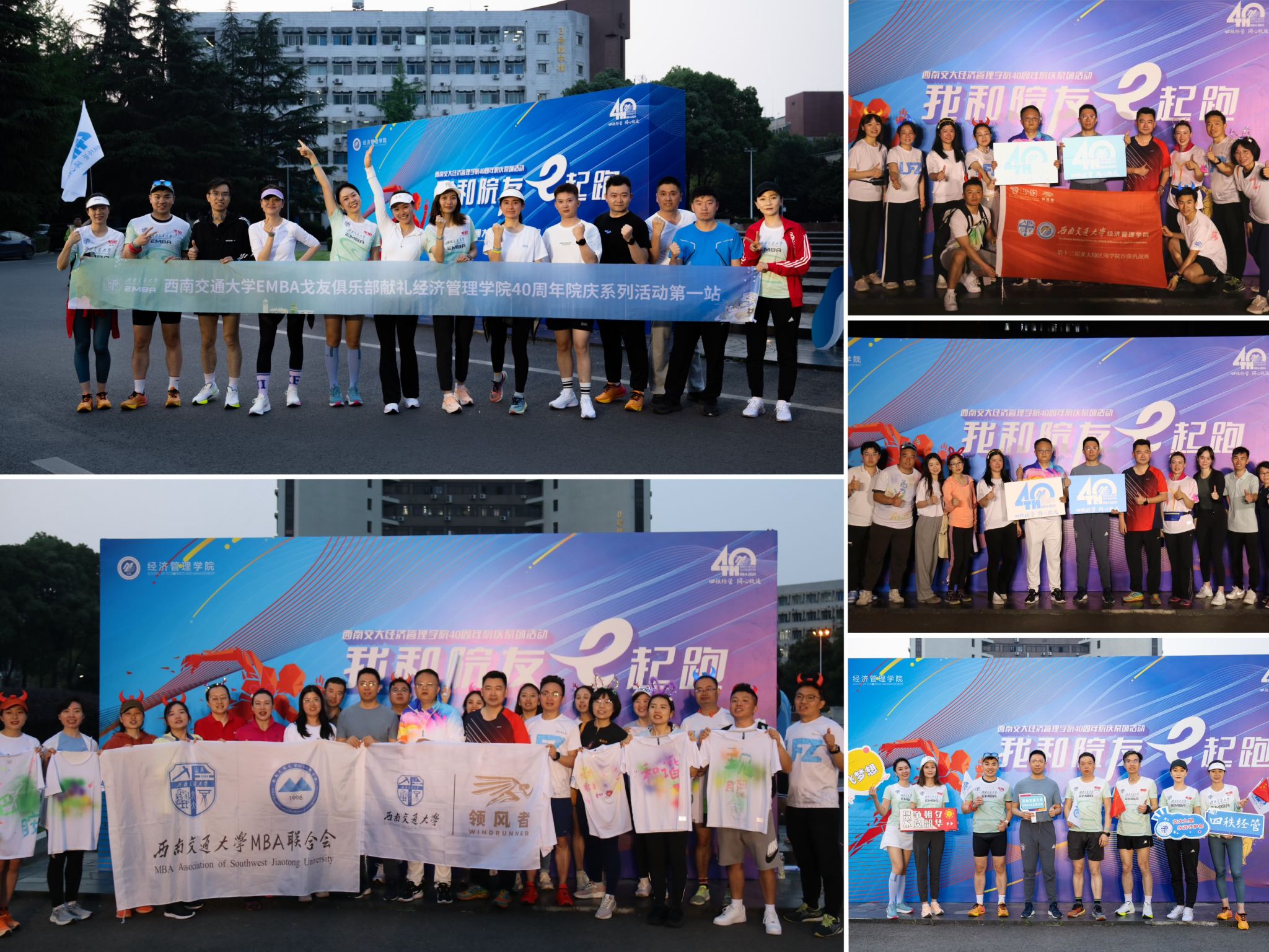 建院四十周年之际,一场旨在增进院友与母校纽带、强化院友互动、提升团队协作精神的“我和院友‘e’起跑——荧光夜跑”活动在九里校区内热烈展开。学院党委书记郭强、院长韩科、党委副书记余小英、党委副书记、纪委书记晏理斌、团委书记贾佳、综合事务办公室副主任张笑芸出席了本次活动,学院100余名院友、师生参与其中。