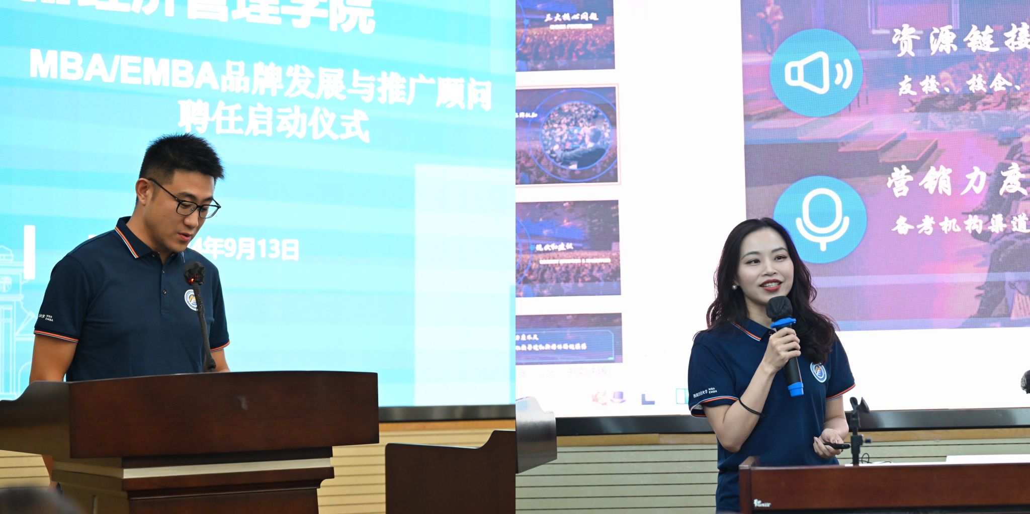2022级MBA线上线下班杨勇作为发言代表提到,身为MBA项目的院友,他深感荣幸能够回到学院担任品牌发展与推广顾问,并承诺将利用自身的行业经验和社会资源,为学院品牌发展贡献力量。另一位发言代表2023级MBA周末1班的曾丹丽则分享了她对学院MBA发展与推广的认知,并表示,将用好自身优势,助力学院在更广层面上提升知名度,吸引更多优秀人才加入交大。