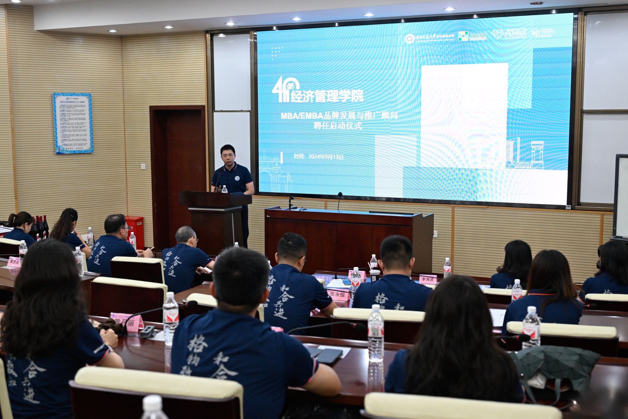 会议伊始,专业学位教育中心主任李海波大家介绍了MBA/EMBA品牌发展与推广顾问聘任的背景及其深远意义,并谈到,在全球化与数字化浪潮的推动下,品牌已成为衡量教育项目影响力的关键指标。为了进一步提升西南交通大学MBA/EMBA项目的社会影响力,学院决定聘请一批在各自领域具有丰富经验和广泛影响力的校友及在读学生担任品牌发展与推广顾问,他们将为学院品牌建设提供宝贵的建议,并利用其行业资源与社会链接,助力学院提升社会知名度。
