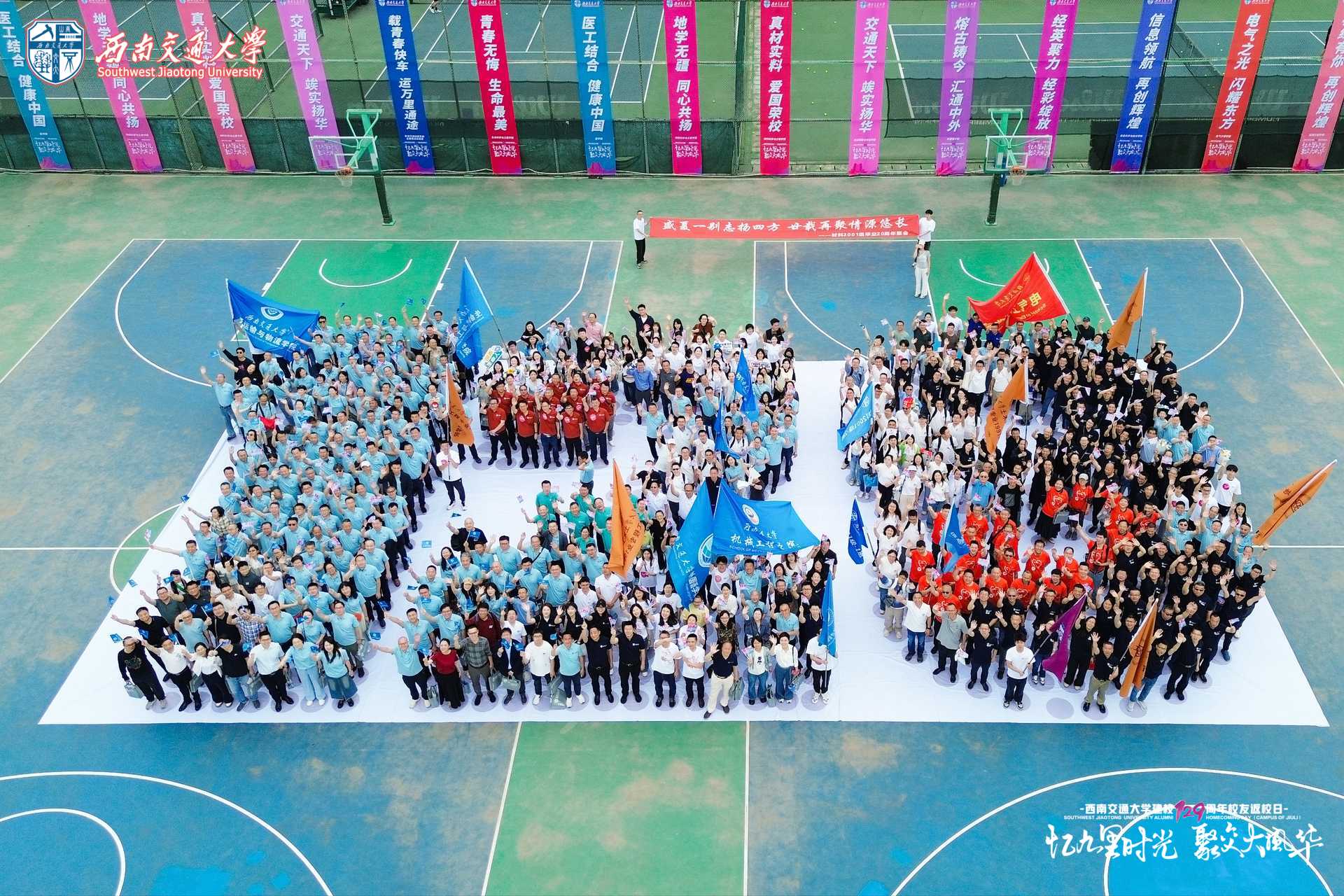 5月10日上午,西南交通大学建校129周年校友返校日活动在九里校区篮球场隆重举行。学校各教学科研单位相关工作人员,各返校专业教师代表、校友代表,近600位嘉宾、校友参加活动。跨越岁月长河,各地校友齐聚母校,共话青春记忆。