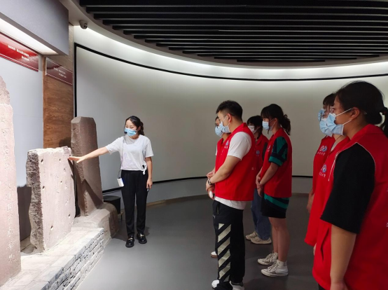 在讲解员的带领下参观红军纪念馆