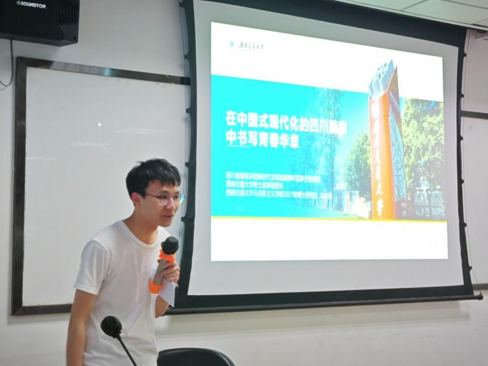 于J0316开展“星火经英”计划第十一期第八次团干部培训暨青年讲师团讲座。本次培训由四川省委宣讲团新时代文明实践青年分团成员、西南交通大学博士宣讲团团长、马克思主义学院2021级博士研究生冷书恒主讲,培训主题为“在中国式现代化的四川篇章中书写青春华章”,详细介绍了四川在中国式现代化建设中做出的贡献与成就,有力引导了同学们思考新时代青年在此进程中应该如何贡献自己的青春力量。