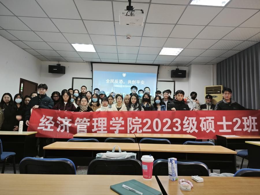 学生反恐怖意识和能力,营造全校安全稳定良好氛围,筑牢校园安全防线,2023级硕士2班于12月15日组织开展“全民反恐,共创平安”反恐怖主义宣传教育主题班会,2023级研究生辅导员李勇老师到场参加此次班会活动并作出重要指导。