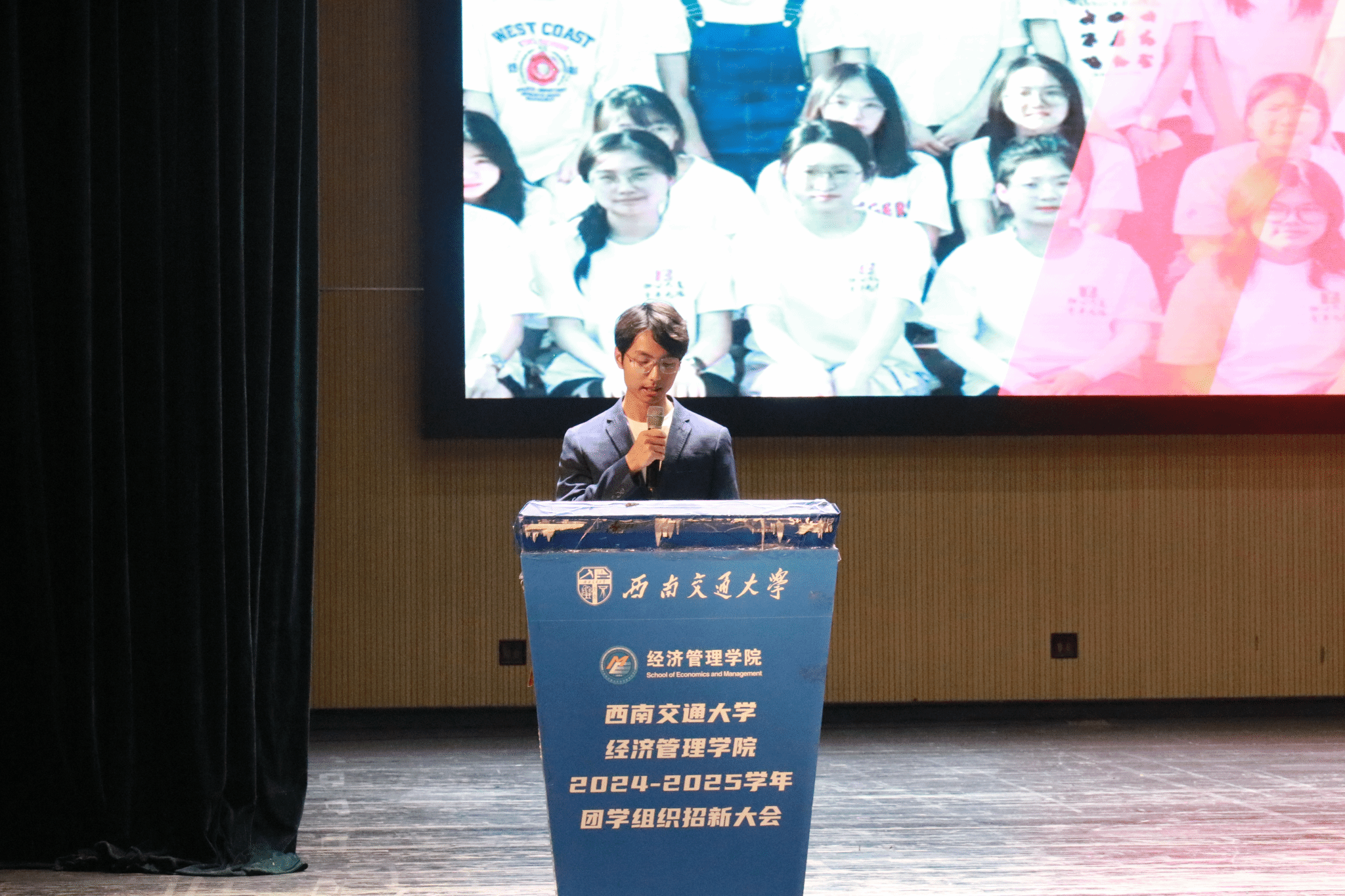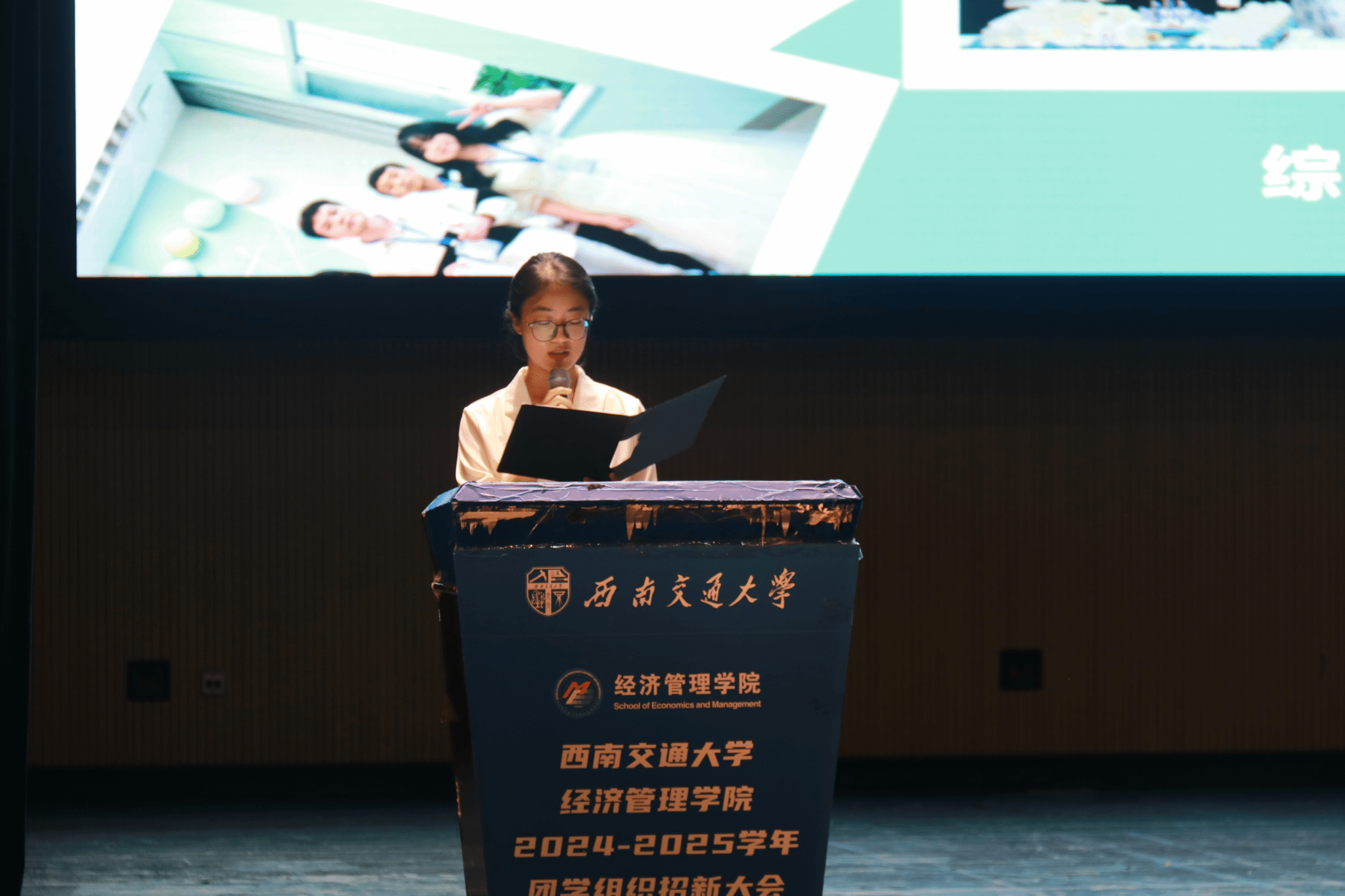 对新同学们表示热烈欢迎,并强调团学组织在学生成长中的重要作用。团学组织通过各类活动展现学生风采,提升学生能力。同时,她也呼吁新生们积极加入团学组织,找到最适合自己的舞台,勇敢迎接挑战,丰富大学生活,书写属于自己的精彩篇章。