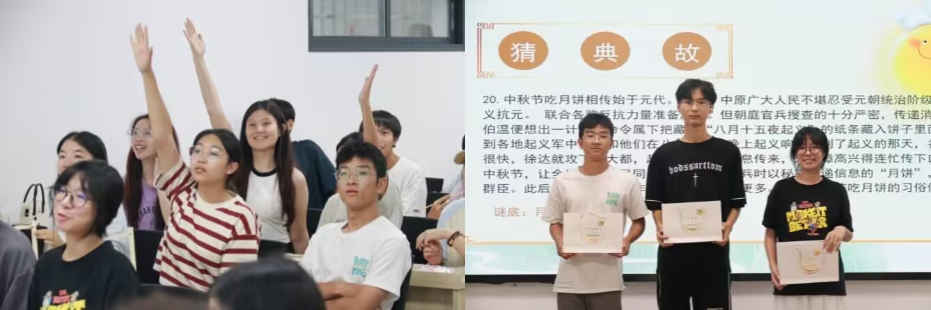 中秋喜乐汇,灯谜竞猜乐翻天。本次活动准备了二十余条灯谜与典故,内容涵盖成语典故、科普知识等,既有娱乐性,又具知识性,让同学们切实感受传统节日的独特魅力,也让中秋的文化内涵在活动中得到了生动展现。