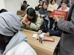 党委副书记余小英、团委书记贾佳及本科2024级辅导员陈建奇、游婷、王重月来到自习教室,携“好运红包”为新生送上暖心祝福。