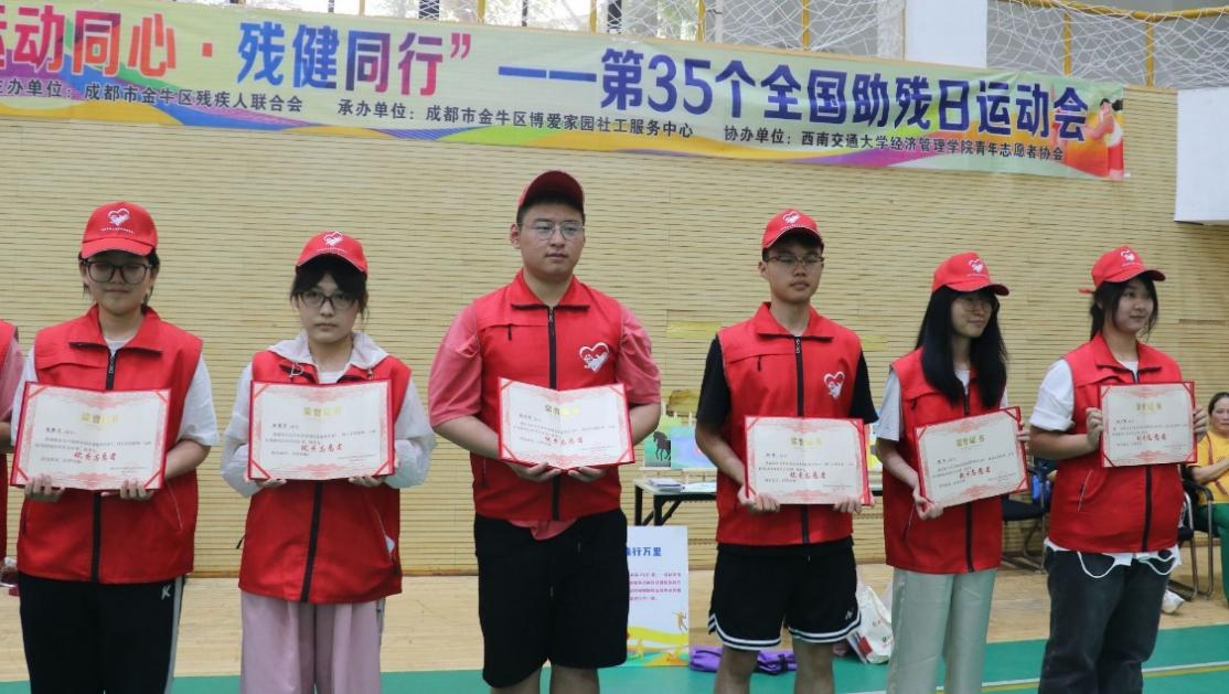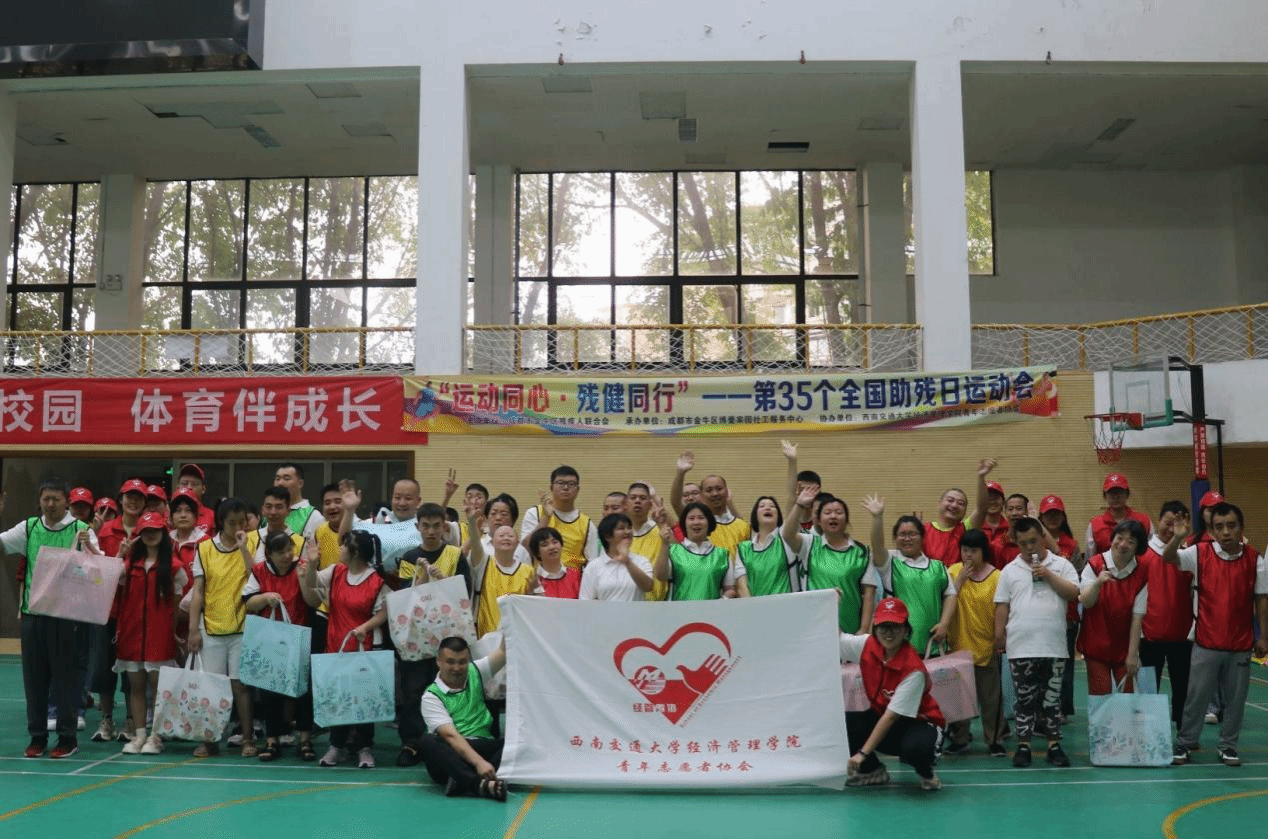 青年志愿者协会协办,成都市金牛区博爱家园社工服务中心承办的“运动同心·残健同行”全国助残日主题活动在西南交通大学詹天佑体育馆成功举办。活动旨在通过丰富多彩的体育活动,促进残障人士与社会大众之间的相互理解和融合,展示残障群体自强不息的精神风貌。活动吸引了来自金牛阳光家园的学员及家长、西南交通大学师生的共同参与。