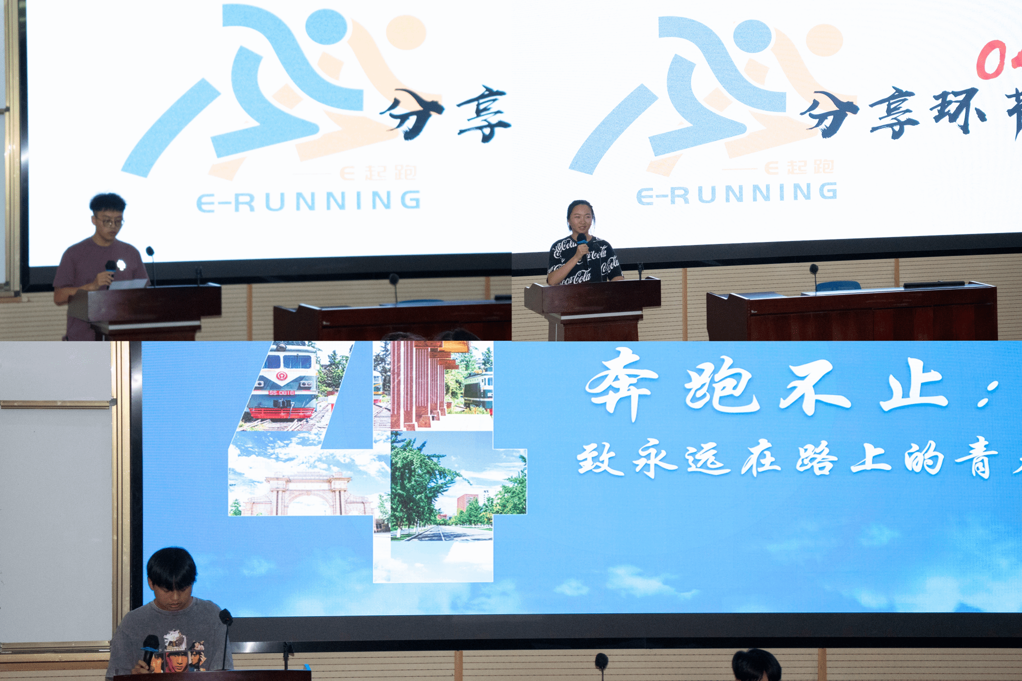 是e起跑,更是”忆“起跑。孙旋智、许张玲、刘棚、敬建雄、俞子譞五位同学分享了在跑步期间的点滴回忆与成长收获,建议同学们要科学运动、避免受伤,并表示与团队成员一起跑步不仅提升了体能,增强了意志力与学习效率,还让大家体会到坚持与协作带来的集体凝聚力,引发在场同学们深刻共鸣。