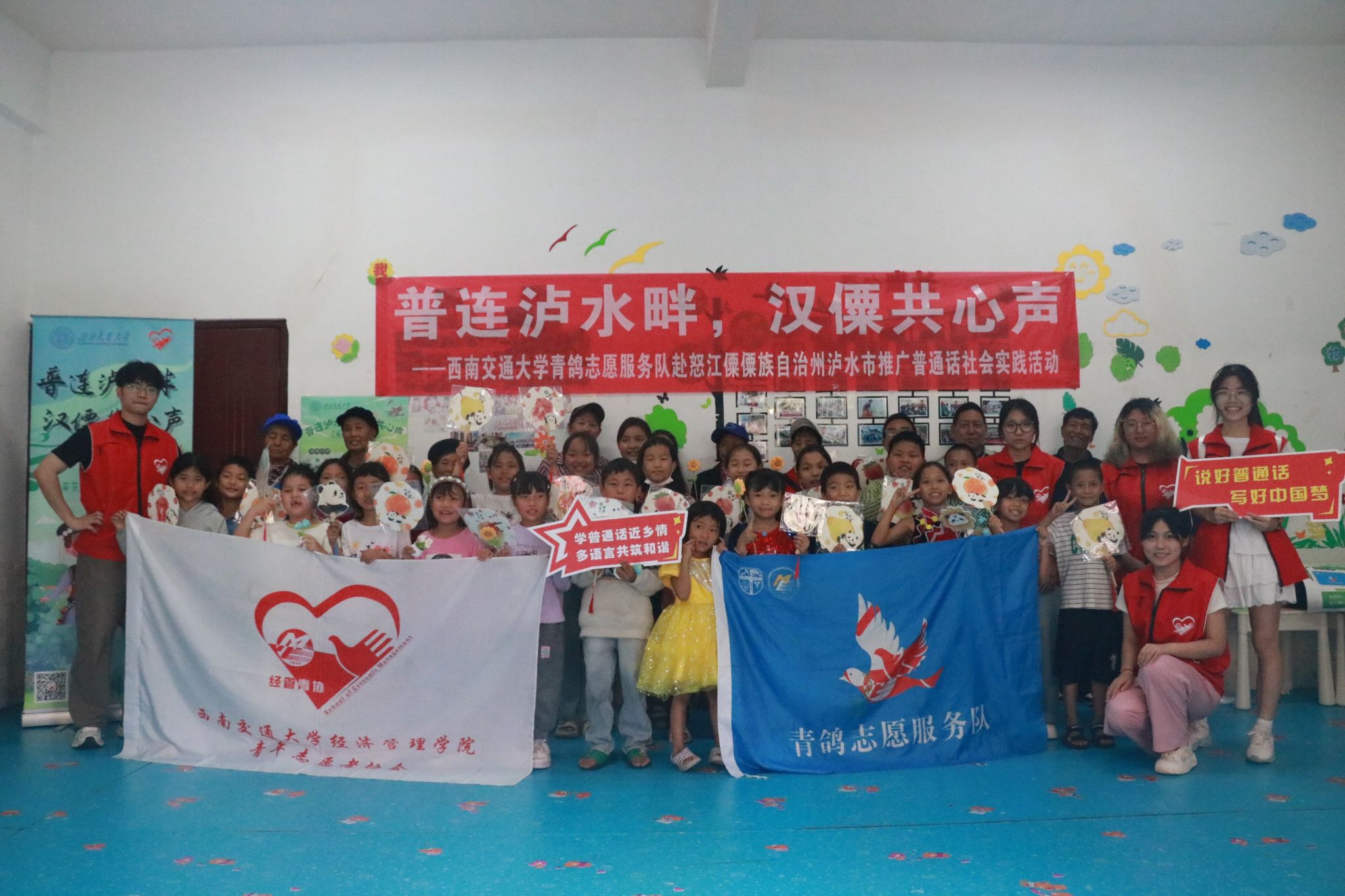青鸽志愿服务队一行深入云南省怒江傈僳自治州泸水市开展“普连泸水畔,汉僳共心声”——推普助力乡村振兴社会实践活动。此次实践中,团队通过街头调研,定点摊位,课堂教育,走访宣传等形式,开展普通话调研和推广活动,普及民族共同语言,促进中华优秀传统文化传承和发扬,为赓续中华文明倾注青年力量,以青春之行助力乡村振兴。
