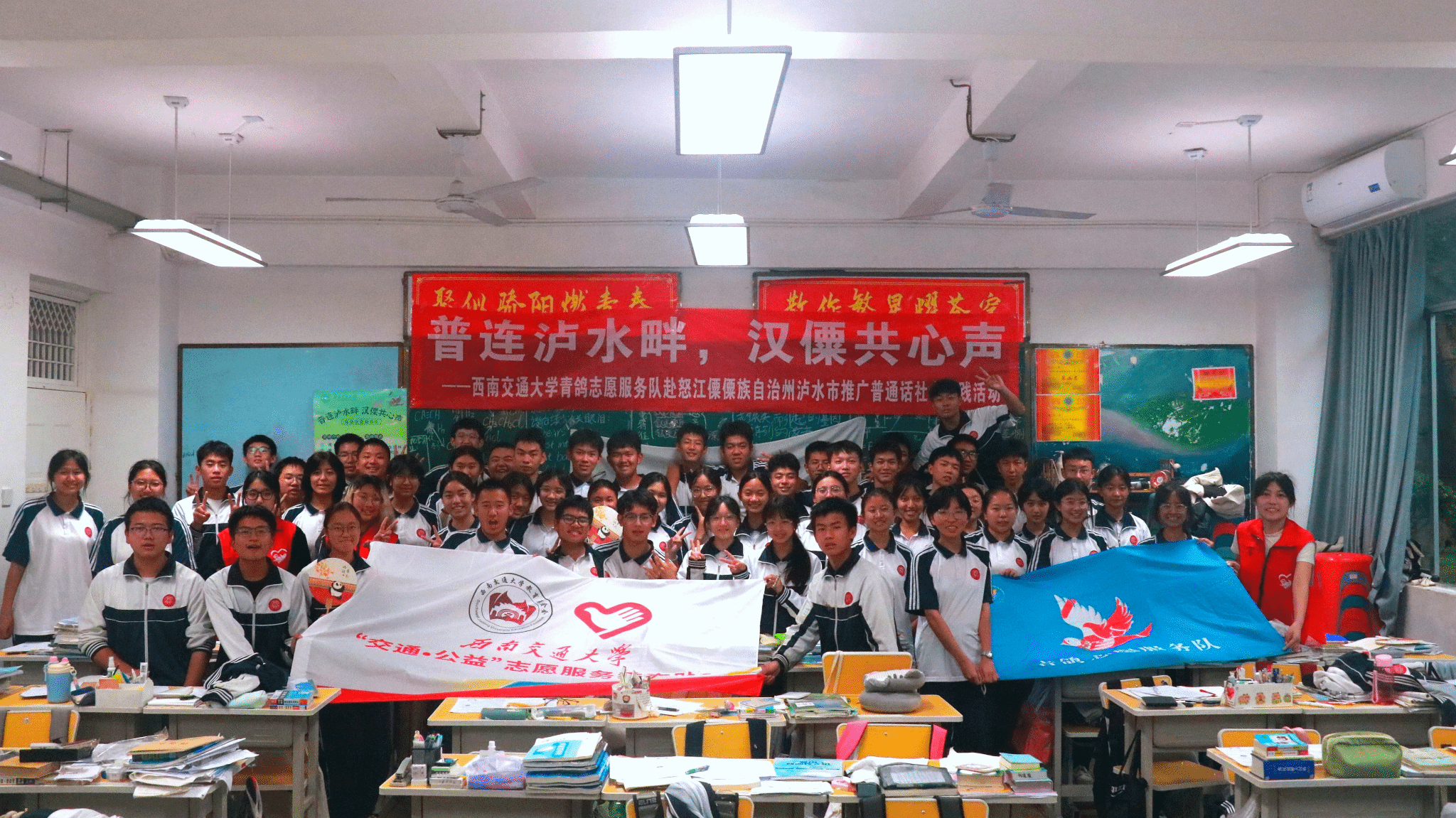 最后,伴随着一颗颗懵懂却又炙热的心,伴随着一个个稚嫩又伟大的梦想,伴随着一句句欢声与笑语,推普课堂在大家”普连泸水畔,汉僳共心声”的口号声中落幕。