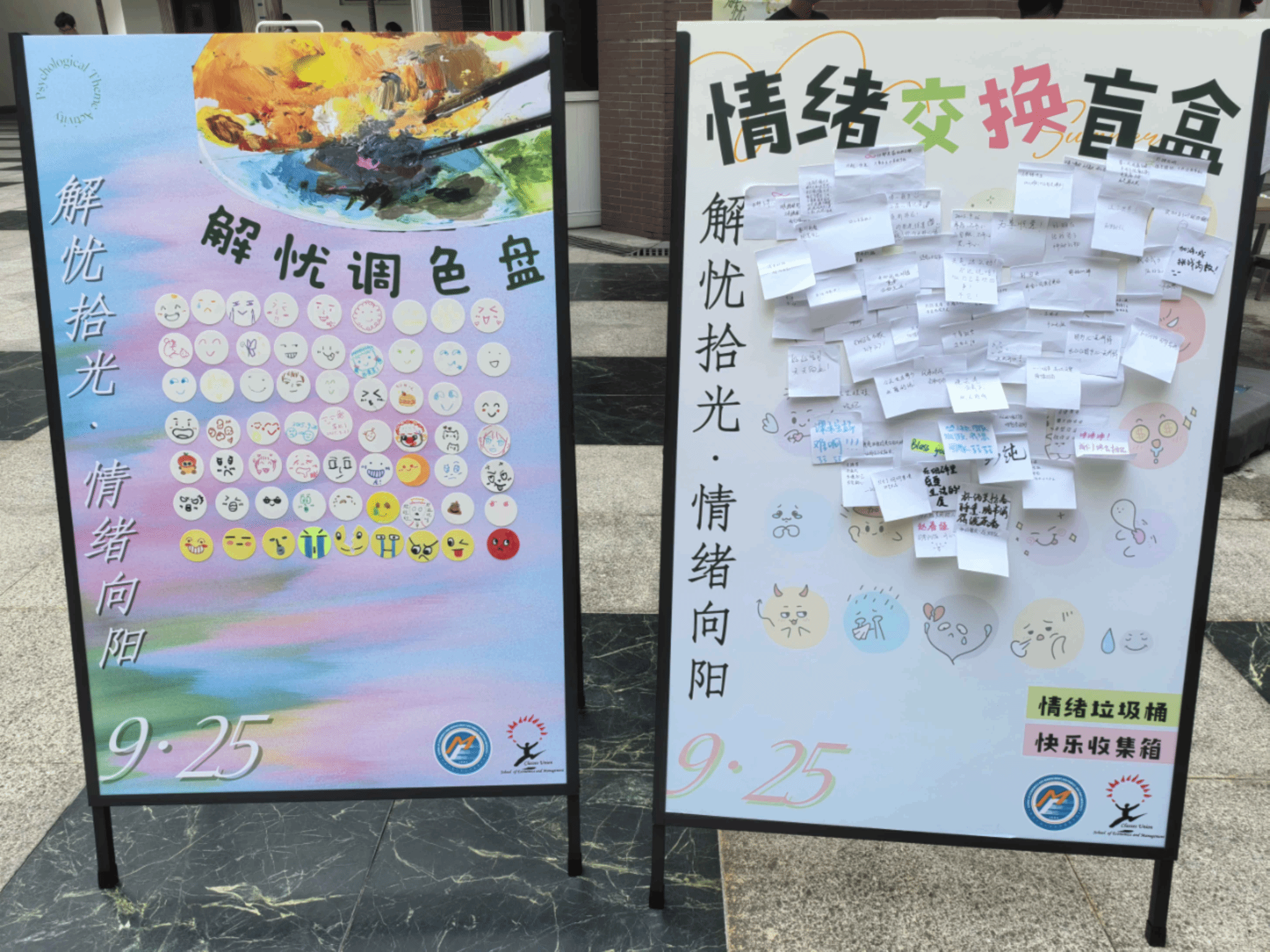 班级联合会于2024年9月25日,在九里校区4号教学楼1楼面向全校学生举办了“解忧拾光·情绪向阳”9.25心理主题活动。