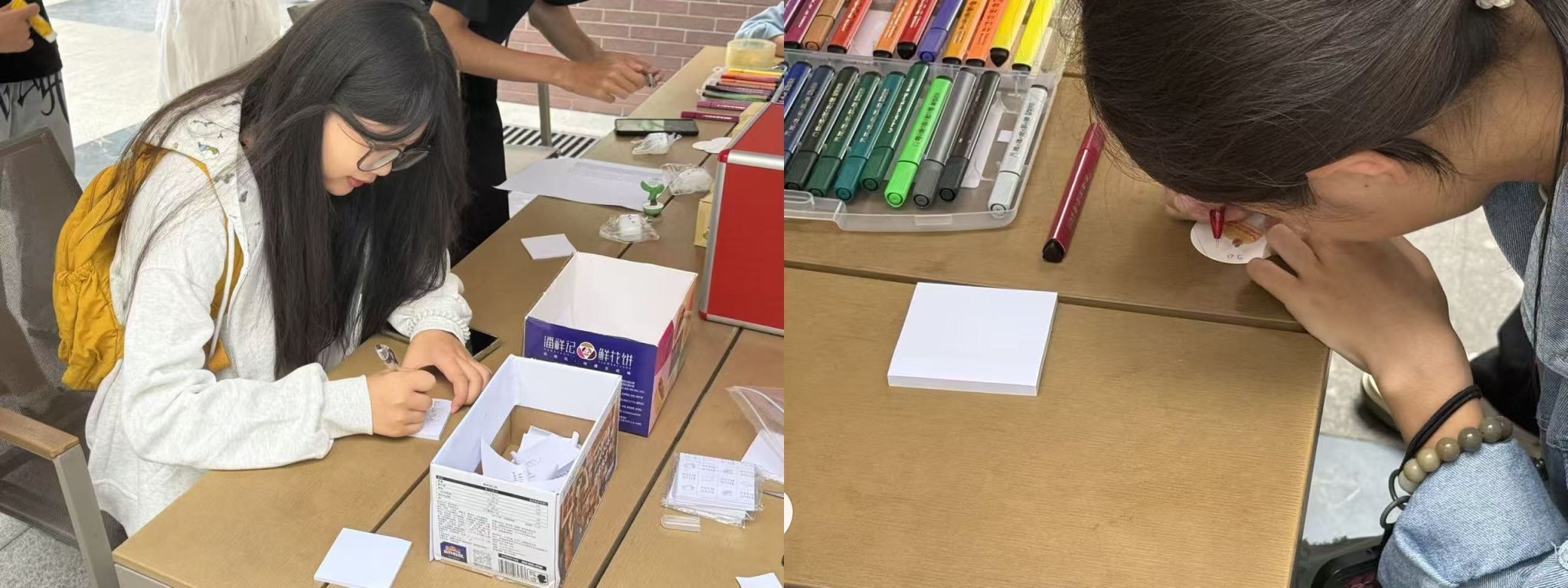 在“情绪交换盲盒”环节,同学们或写下焦虑与烦恼投入“情绪垃圾桶”,或抽取他人的鼓励便签,在匿名的交流中实现情绪的释放与传递,不少同学还主动写下新的鼓励便签,延续这份温暖。