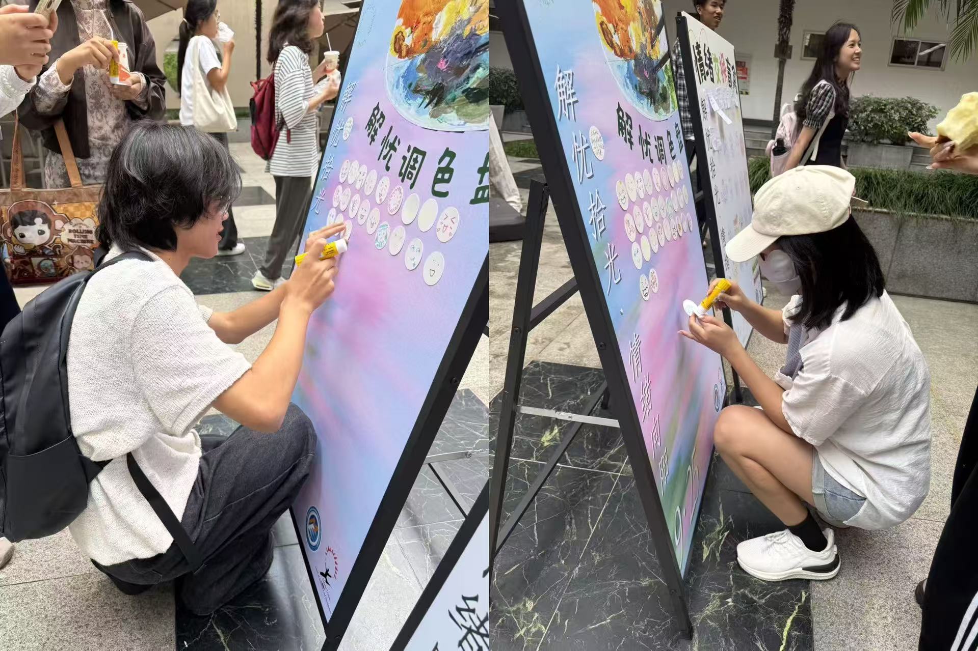 本次活动精心设计了“解忧调色盘”、“情绪交换盲盒”两大核心环节,并设有抽奖互动环节,旨在通过多元化的形式,为同学们提供一个释放压力、交流心声、汲取力量的平台。
