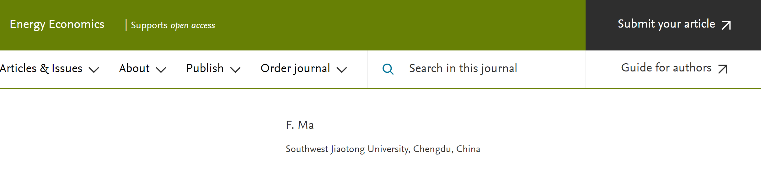 马锋副教授应英国萨塞克斯大学教授Richard S. J. Tol主编邀请,正式加入Energy Economics编委会,出任该刊副主编。Energy Economics是国际SSCI索引期刊,JCR1区,ABS 3,澳大利亚ABDC期刊列表A*类顶级期刊,在能源经济领域具有广泛的影响力,研究领域覆盖能源经济、能源金融、能源与环境等方面,是我国能源学术界、实务界等进行能源问题研究及决策时的重要参考,2021年最新影响因子为9.252。