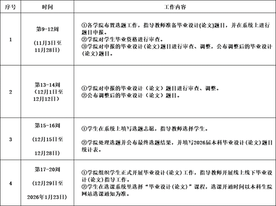 1、本次选题、开题工作具体事项及时间节点