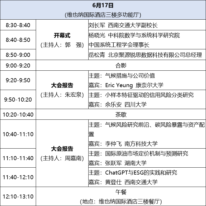 举办的气候风险与金融市场前沿论坛于2023年6月16日-18日在成都召开。