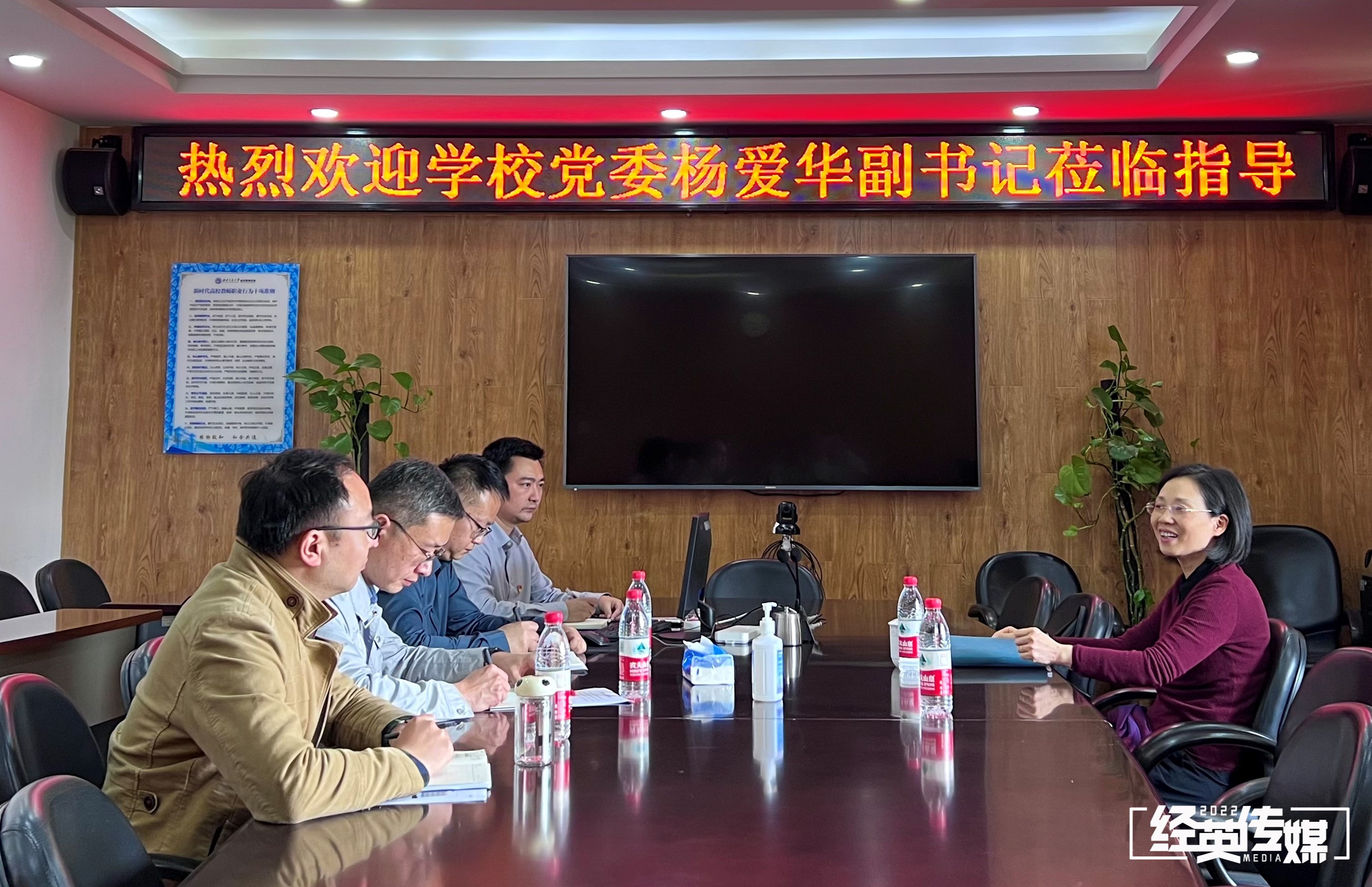 郭强代表学院向杨爱华副书记汇报了学院的概况、学科建设、人才培养、科学研究、学生工作以及学院特色发展的思考与规划等情况。