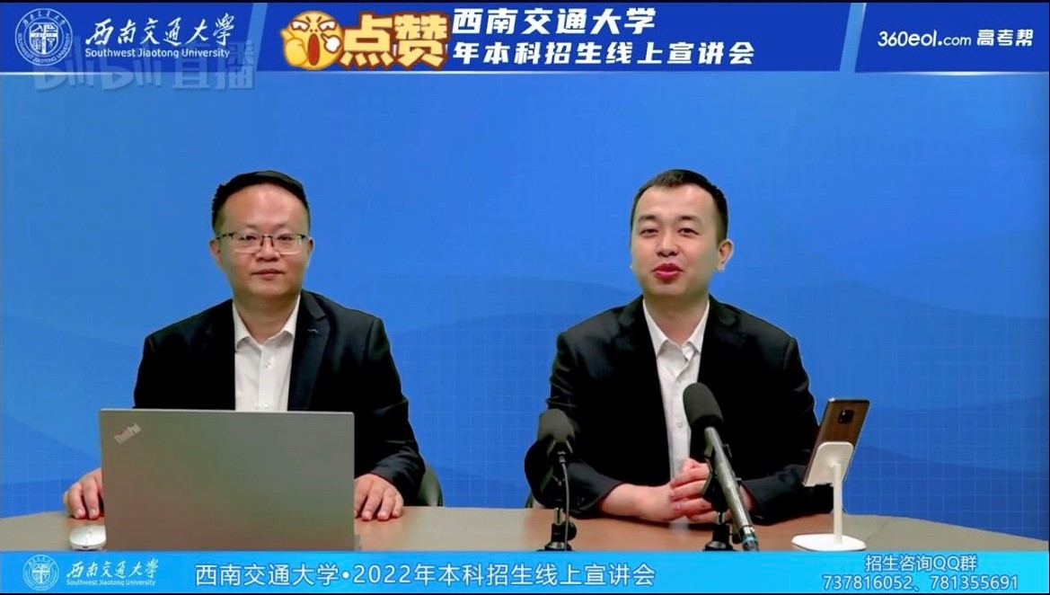 执行院长郭强教授就学院整体情况、师资力量、本科各专业情况、招生及就业情况等作了详细的介绍。随后,杨宏毅副书记、陈建奇老师针对直播期间学生及家长关心的课外活动、住宿环境等问题进行了解答,李良副院长、漆敏老师就免研、实习、实践等问题做了详细解答。最后,老师们对关注本场直播的全国考生表达了祝福,欢迎他们积极报考西南交通大学 漫蛙漫画