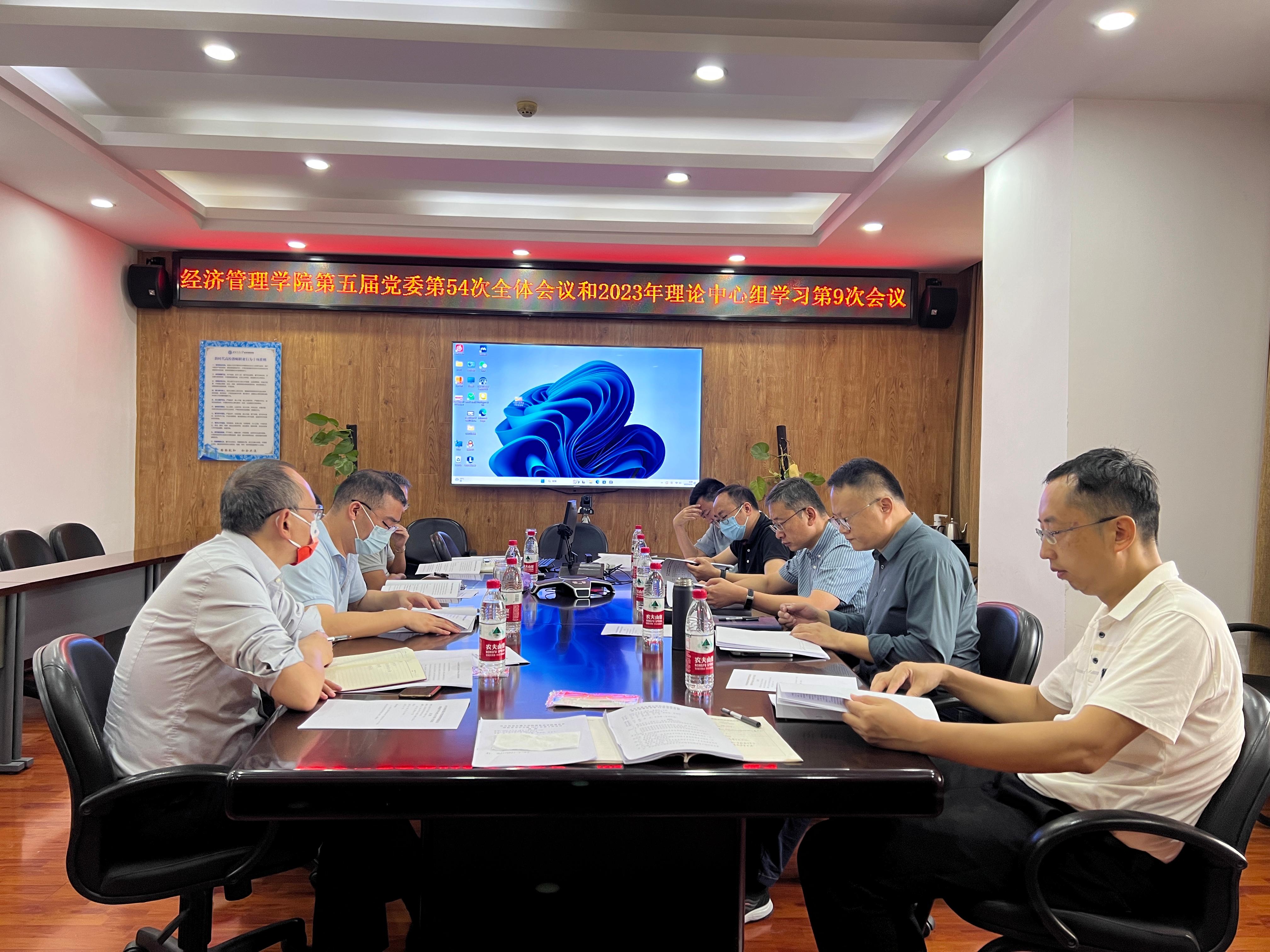 2023年9月15日上午9:00,学院第五届党委2023年第9次理论学习中心组学习、第54次全体会议及2023年第12次党政联席会在九里校区零号楼0607会议室召开。
