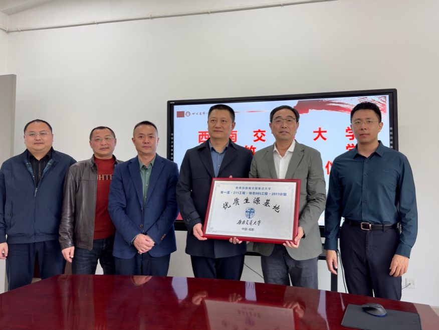德阳五中党委书记唐永富代表德阳五中全体师生,对西南交通大学一行的到来表示热烈欢迎和衷心感谢。他表示能够成为西南交通大学的优质生源基地,既是对学校近年来在高质量生源输送所取得成绩的肯定,也为今后学校的拔尖创新人才培养模式提供了新的思考。陈岩峰处长随后向德阳五中授予“优质生源基地”。