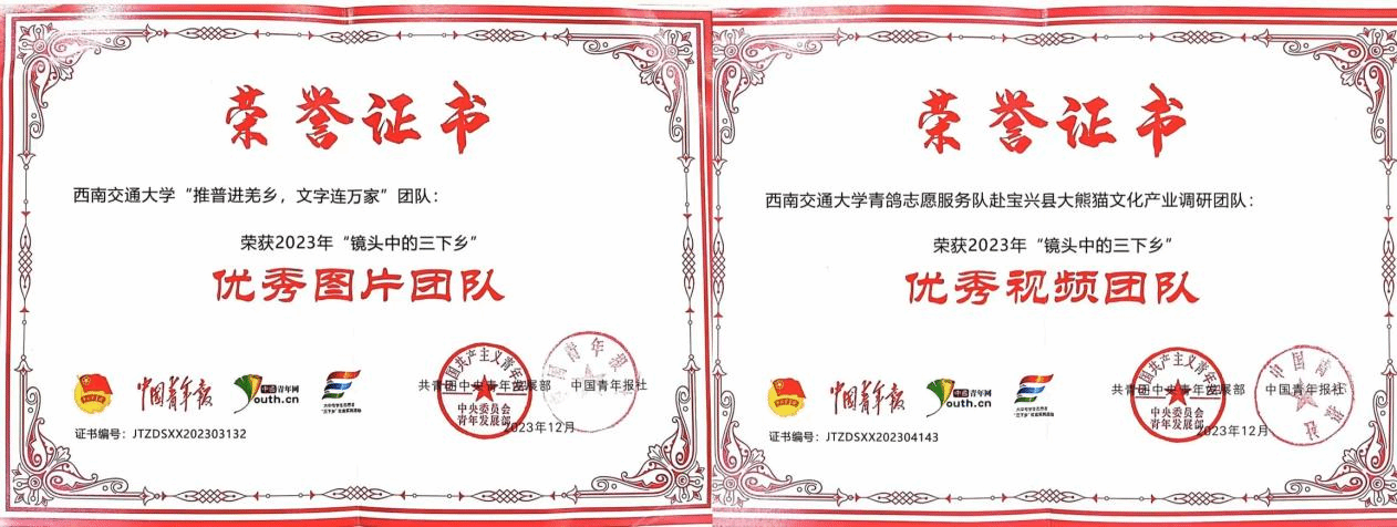 近年来,青鸽志愿服务队队员们在学院老师的悉心指导下,进社区、下农村、访群众,脚踏实地,深入基层开展异彩纷呈的实践活动,活动涉及新农村建设、文化传承、志愿服务等各个方面,实践队员边实践边学习边探索,在实践中历练了本领,淬炼了心灵,在全国各地发挥着自己的光和热。实践活动得到了当地政府、群众和社会各界的一致好评,取得了不错的成绩。2022年青鸽志愿服务队入选中国青年报评选的“全国大学生暑期百强实践团队”;2023年青鸽志愿服务队成功入选了由共青团中央青年发展部、中国青年报、中国青年网共同举办全国大中专学生志愿者暑期文化科技卫生“三下乡”社会实践“镜头中的三下乡”活动“优秀图片团队”和“优秀视频团队”,同时团队还收到了来自教育部的表扬信!