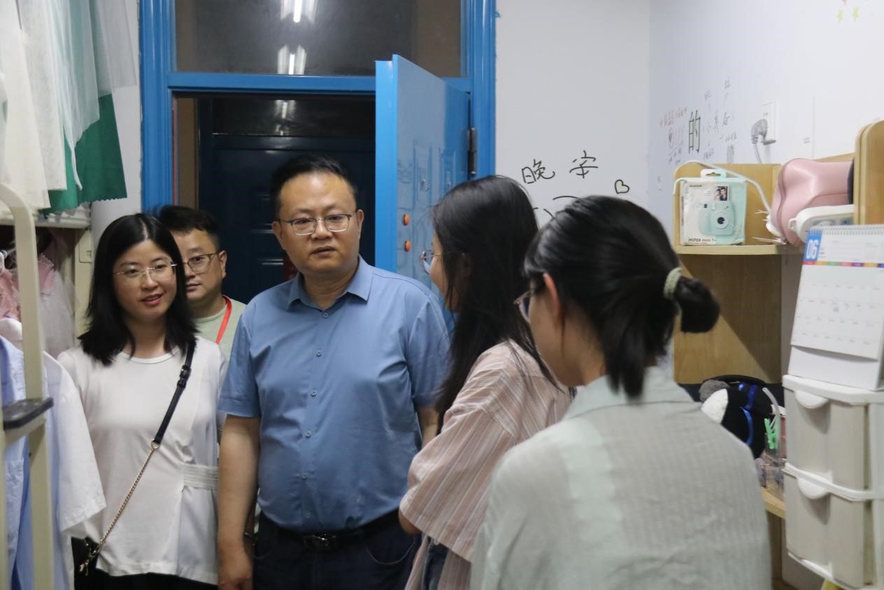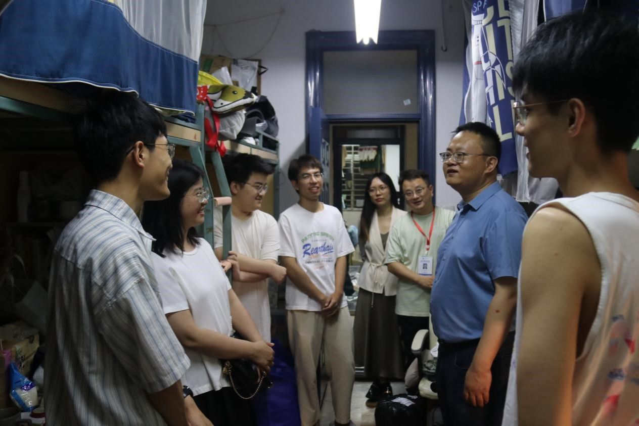 党委书记郭强、党委副书记余小英、本科2020级辅导员陈建奇和尹玉萌走访了2020级毕业生宿舍,并为毕业生送去美好祝福。