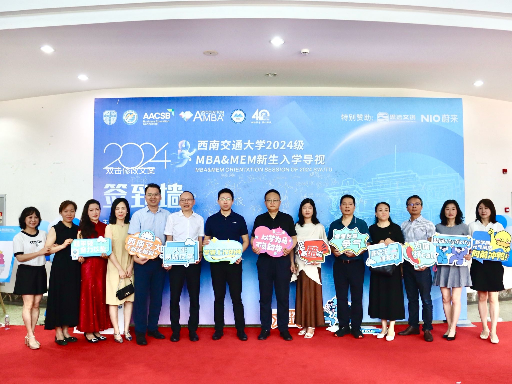 党委书记郭强,院长韩科,党委副书记余小英,副院长李良,综合事务办公室主任何鹏,专业学位教育中心主任李海波,副主任诸波、李洪辉、陈静,专业学位教育中心老师袁小容、马广平、滕倩、向洪信、宋洁,西南交通大学MBA校友会会长蒋兴木和历届校友代表,第25届MBA联合会主席团成员出席了本次入学导视活动。近400名2024级MBA、MEM新生参加了本次活动。