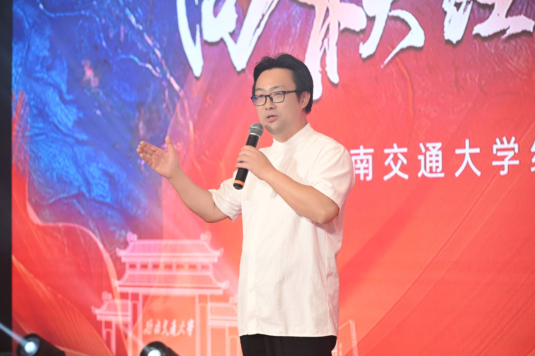 西南交通大学环境科学与工程学院党委书记、中国音乐家协会会员、四川省音乐家协会理事、成都市音乐家协会副主席、学院优秀院友甘霖带来的歌曲演唱《三峡情》诉说深刻情谊,晚会气氛在经管师生的合唱歌曲《一路生花》中推至高潮。在西南交通大学校长助理宋新提议下,在座宾朋共同庆祝学院四十载光辉历程,期待学院更加璀璨的明天。