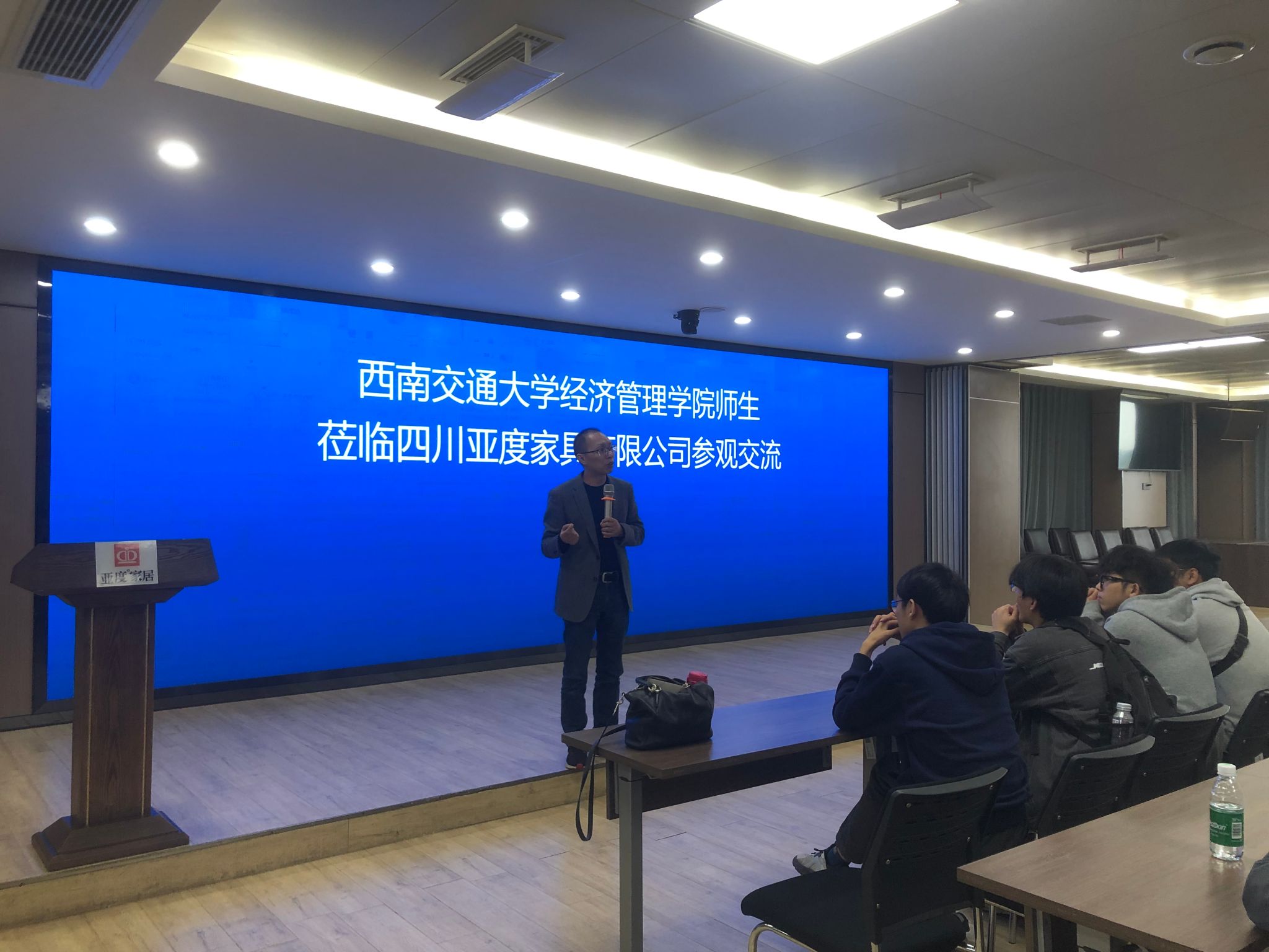 活动伊始,四川亚度家具有限公司常务副总经理胡继飞先生为同学们详细介绍了公司的发展历程、漫蛙漫画以及市场定位。他向大家展示了公司的可视化电子屏,通过系统可视化技术,展现了亚度家具在智能制造和信息化管理方面的先进成果,让同学们对现代家具制造业的科技应用有了直观的认识。