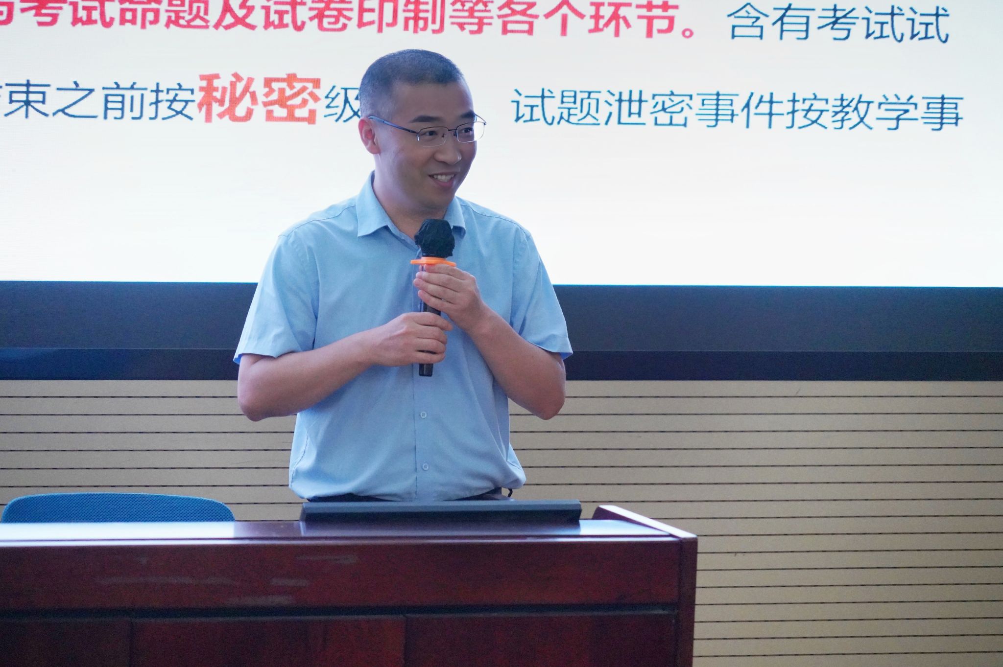 紧接着,学院党委书记蒋佳开展保密专题培训。蒋佳系统解读了《保密工作十二条违规行为清单》,结合真实案例剖析泄密风险,强调全体教职工需强化保密意识,将保密要求贯穿教学科研全过程,为学院各项工作的安全、有序开展筑牢防线。