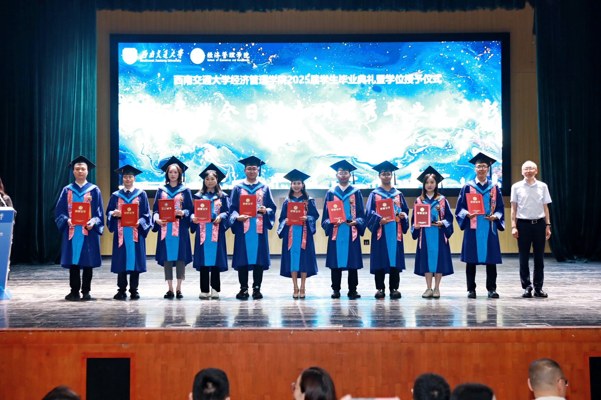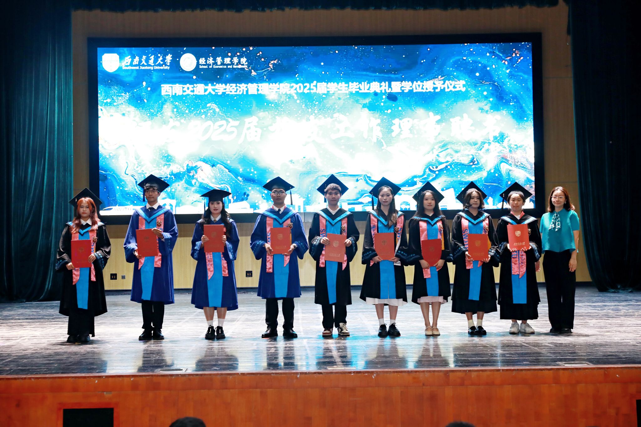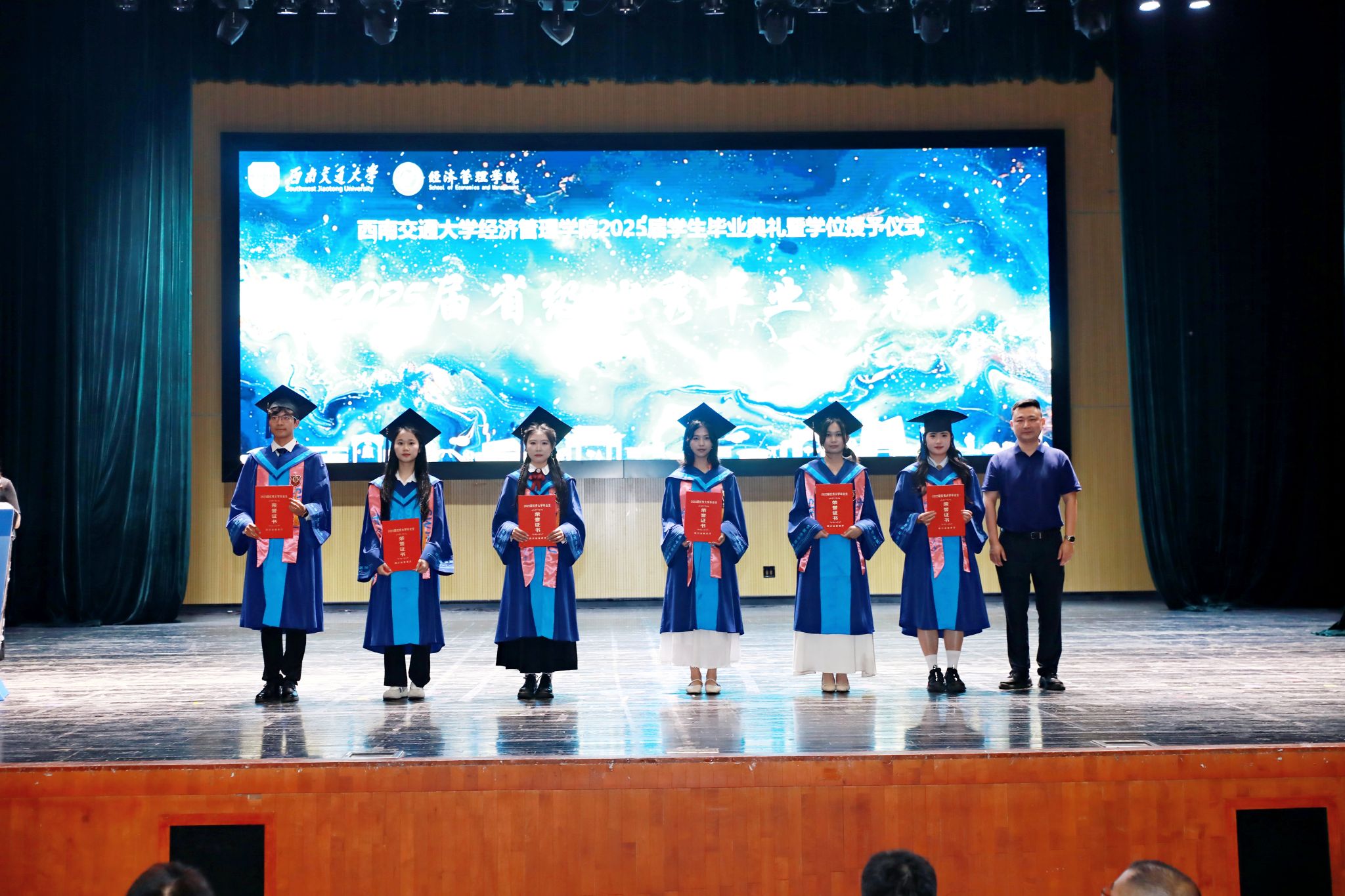 学院党委书记蒋佳宣读2025届本科生、2025届MBA毕业生院级荣誉获得者名单,学院副院长李良为获奖毕业生颁奖。院级获奖毕业生以勤勉为舟、以实干为桨,在专业学习、实践活动与集体建设中展现出卓越的综合素养。
