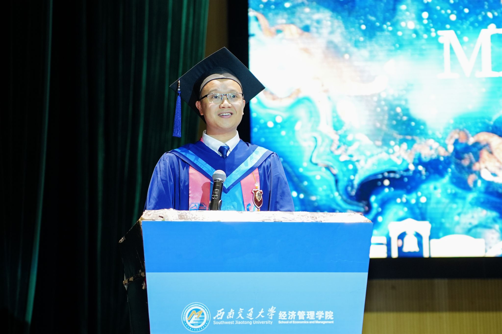 全体师生,向圆满完成学业的毕业生们表示最热烈的祝贺,向辛勤耕耘的老师、默默关心的家长致以最崇高的敬意。韩科提到,毕业生是学院向上发展的见证者,每位经管人的成长都镌刻着 “竢实扬华,自强不息”的交大精神,体现出“格物致知,和合共进”的经管院训。临别之际,韩科用“三个希望”勉励全体毕业生:一是要坚守初心,勇担使命,将个人理想融入国家发展大局,始终以家国情怀诠释交大经管人的使命担当;二是要追求卓越,砥砺奋进,在专业领域深耕不辍,对待工作精益求精;三是要心怀感恩,回馈社会,铭记父母、师长、同窗的深厚情谊,在回馈社会的行动中实现人生价值。