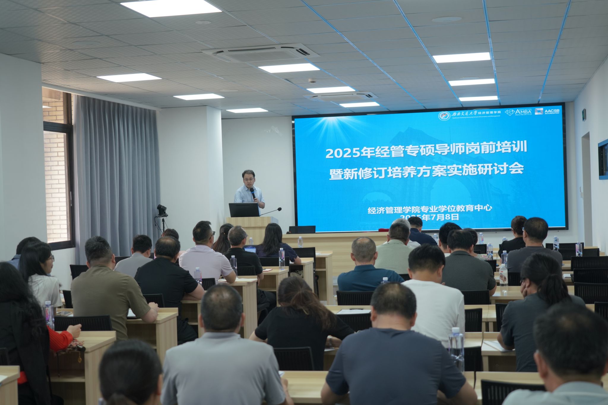 于0819教室召开2025年经管专硕导师岗前培训暨新修订培养方案实施研讨会。学院院长韩科,副院长李良出席研讨会,2025年新增上岗导师与学院资深导师参会研讨,会议由专业学位教育中心副主任诸波主持。