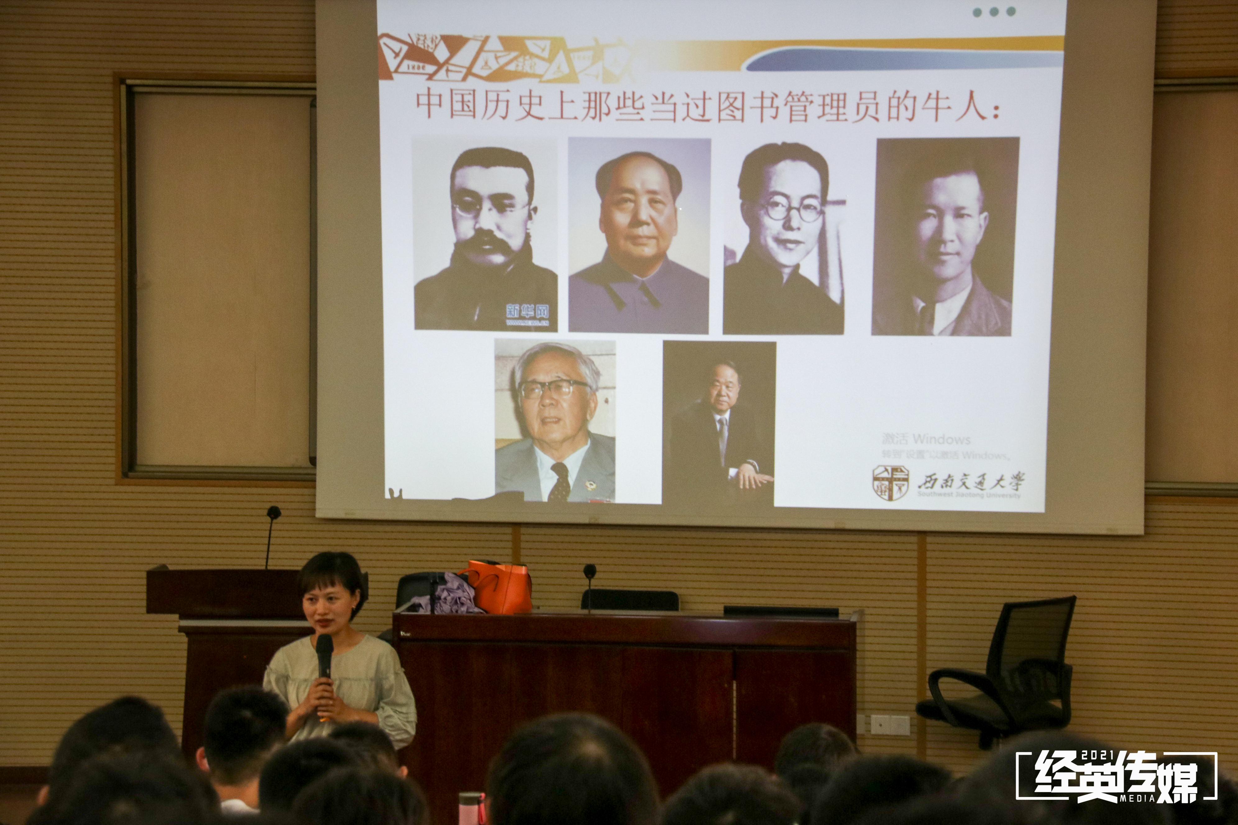 本次讲座的主题是“爱上图书馆,使你变得更优秀”。何老师为大家简述了几位伟人与图书馆结缘的事例,引导大家思考图书馆对未来发展的助益。