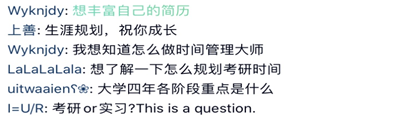 做好大学生涯规划不仅仅是着眼于现在,更是服务于未来,只有做好大学生涯规划,一步一步充实自己,才能丰富自己的阅历、填充自己的简历,为自己未来争取更好的机会。从本次推广活动收到的反馈来看,同学们对大学生生涯规划训练营的开展都十分期待,希望能从中学习更多关于生涯规划的知识,帮助自己更好地作好个人的大学生涯规划。