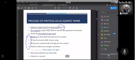林楚彬老师担任主讲人。林楚彬老师以其风趣幽默的风格和一丝不苟的治学态度广受同学们的喜爱。讲座开始后,林老师首先提出诚信科研,要求同学们遵守学术准则和规范,树立学术道德观。研究生学习阶段是从事科学研究的开始,因此更应该养成好的习惯。随后,林老师就如何发表一篇论文对研究生新生们进行了细致的讲解。从选定主题开始,到具体研究,再到写出初稿,如何一遍遍修改,最后投到期刊。学生们对这件研究生阶段必经之事尤其关心,也因此听得极为认真。在此过程中,林老师毫不吝啬地分享自己的投稿经验,同学们直呼干货满满。作为刚踏进研究生阶段的新生们,未来能否在学术研究方面大放异彩仍未可知,但经过这节通向学术大门的第一课, 漫蛙漫画