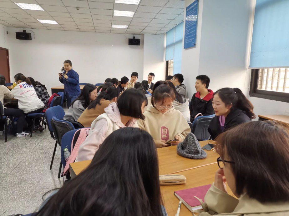 彭黎明老师亲切地与同学们打过招呼,职业生涯规划课正式拉开了帷幕。首先,彭老师进行了一段简短的自我介绍,并提出了几个问题,之后老师把两个班四十八位同学分为了六个小组,每个小组都对老师提出的问题展开了热烈的讨论。