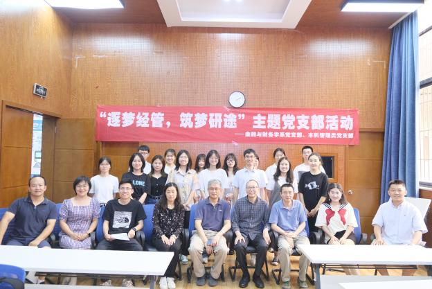 2022年6月9日下午,金融与财务学系党支部与本科管理类党支部于J0218共同举办了“逐梦经管,筑梦研途”主题党支部活动。本次活动由金融与财务学系党支部书记马锋老师指导开展,以研究生升学模拟面试为主,邀请到学院党委委员李良副院长、党委委员周嘉南副院长、朱宏泉教授、董大勇副教授、郭姝辛老师、户晗蕾老师、梁超老师、许自坚老师参与和指导。