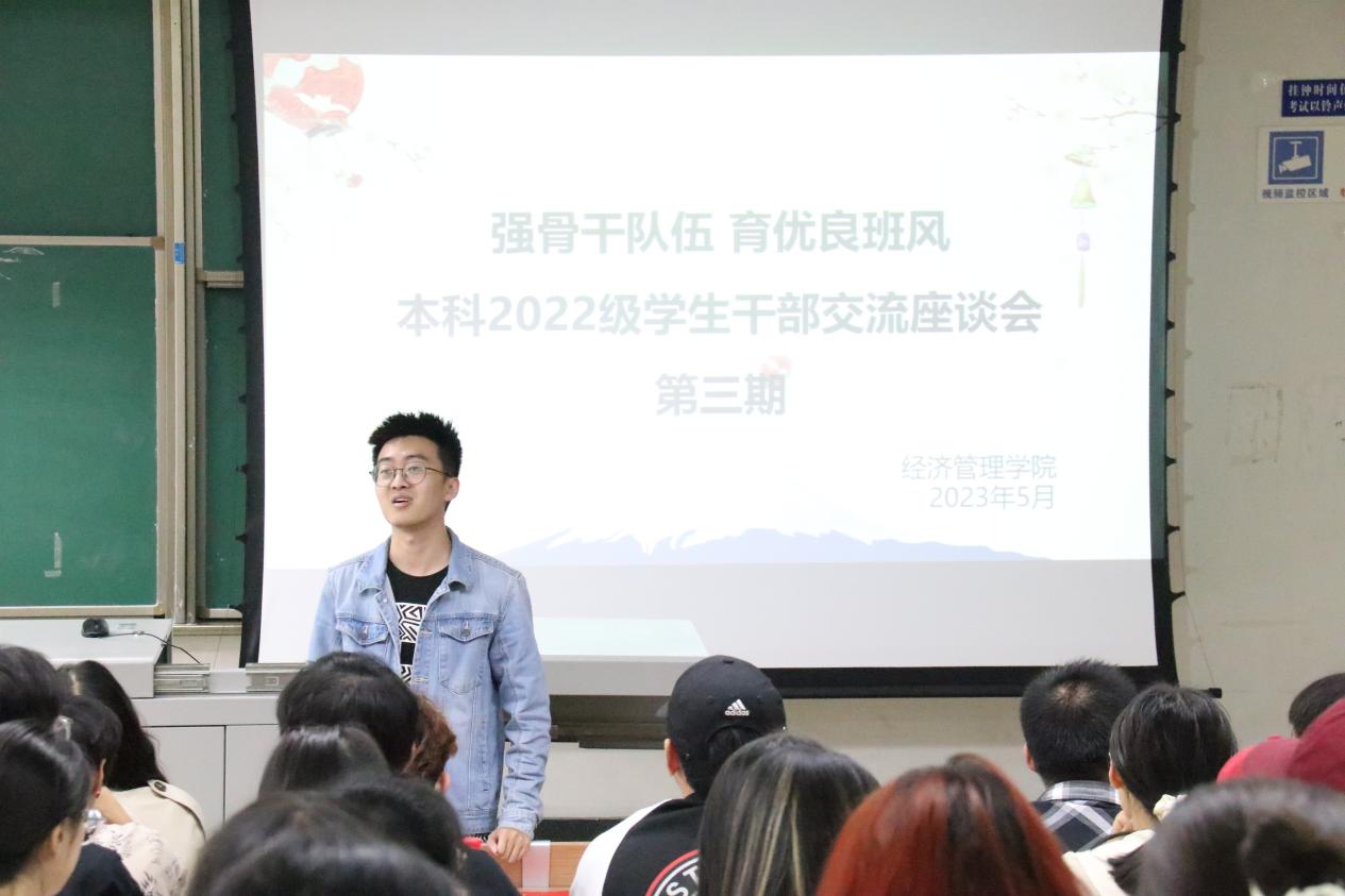本科2022级“强骨干队伍 育优良班风”学生干部交流座谈会第三期在九里校区J4223举行,本科2022级辅导员及全体班委参加,本期座谈会由辅导员王子琦主持。