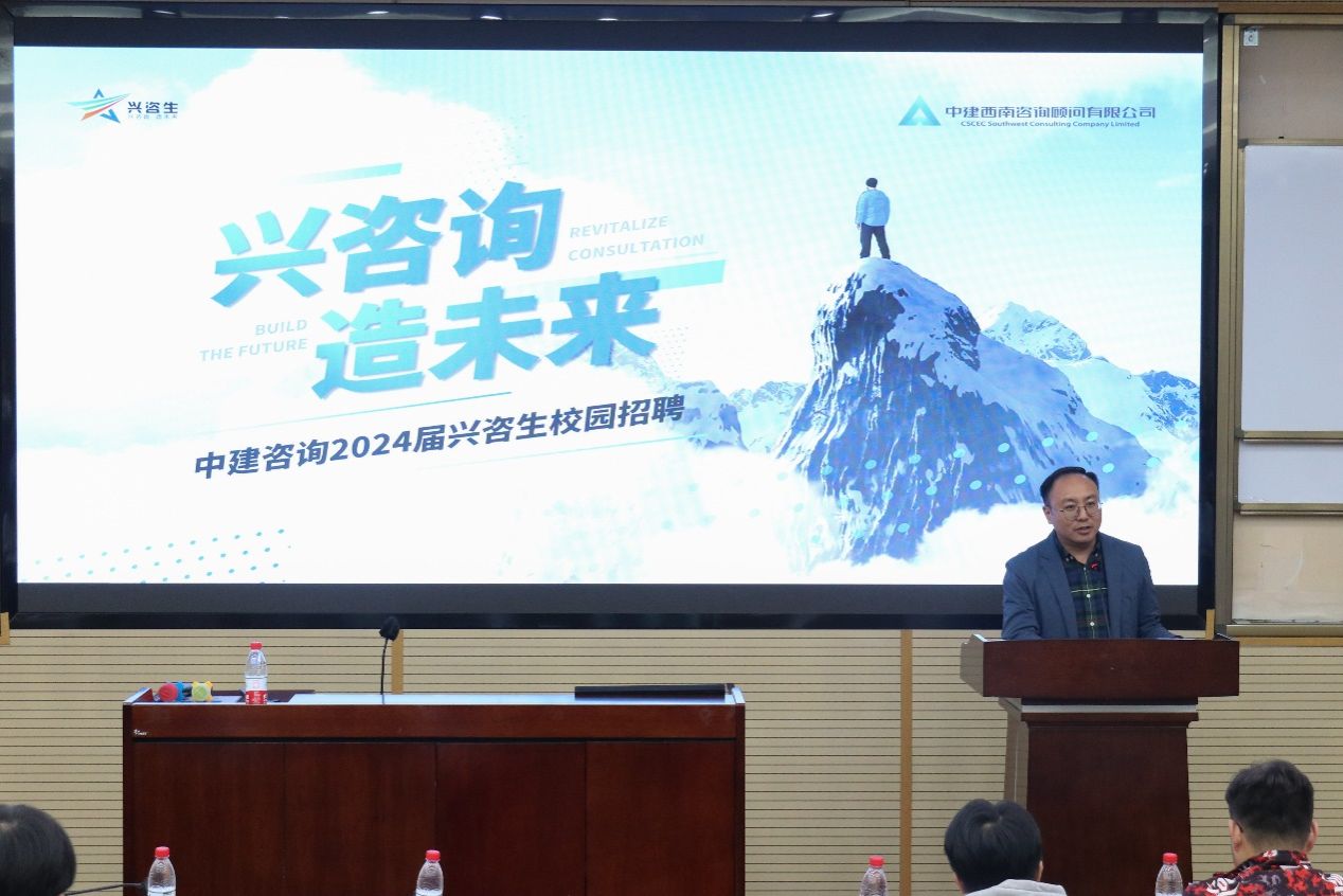 2024届毕业生就业工作,2023年10月9日,中建西南咨询顾问有限公司在西南交通大学九里校区0204教室开展校园招聘会。出席本次会议的嘉宾有中建咨询党委副书记乐志翔、中建咨询人力资源部总经理景权仪、中建咨询第六事业部总经理陈枭、中建咨询人力主管黄志刚;西南交通大学 漫蛙漫画
