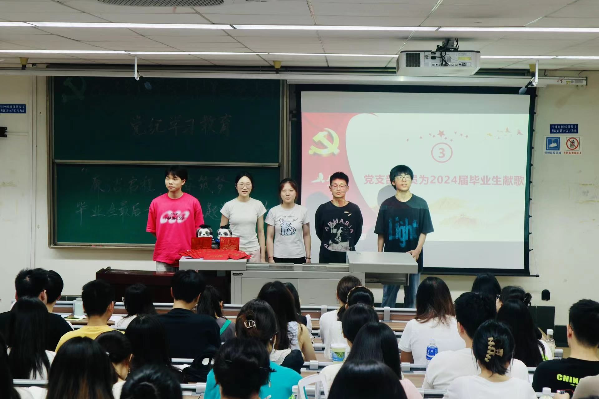随后,本科第二党支部全体成员共同观看了党支部为毕业生党员录制的祝福视频。在视频中学弟学妹们表达了对即将离开支部的毕业生党员学长学姐们的美好祝愿;党支部书记陈建奇与副书记尹玉萌则表达了对毕业生党员们的殷切嘱托与期望。从2020到2024,四年间每一次党日活动中大家认真学习的样子和积极参与活动的笑脸都再次浮现在眼前,一张张合照拼凑起属于本科第二党支部的独家记忆。虽然2020级的毕业生党员即将向新的人生征程出发,但是美好的回忆永远留存在同志们心里,本科第二党支部永远是大家的港湾。