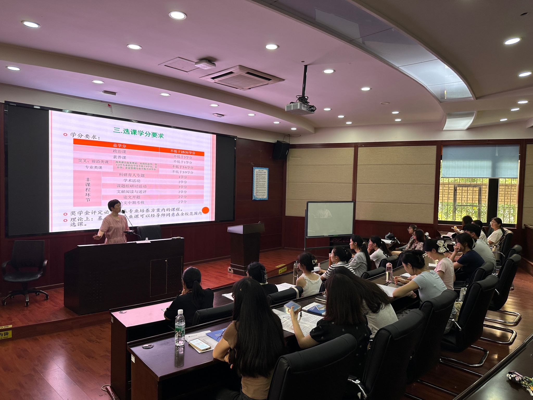 新生培养导视于2024年8月30日16:00分别在0302、0228及0202教室举行。博士生教务杨文敏老师主持博士研究生开学前培养导视会议,学院主管博士研究生工作的马锋副院长参加;研究生教育中心副主任谢静老师负责全日制学术型硕士研究生新生入学前培养导视会议;全日制专业型硕士研究生新生开学前培养导视会议由专业学位教育中心王青芬老师负责。全体研究生新生参加。2024级研究生辅导员王哿参加。老师们深入解读了专业培养方案,并详细说明了选课要点。