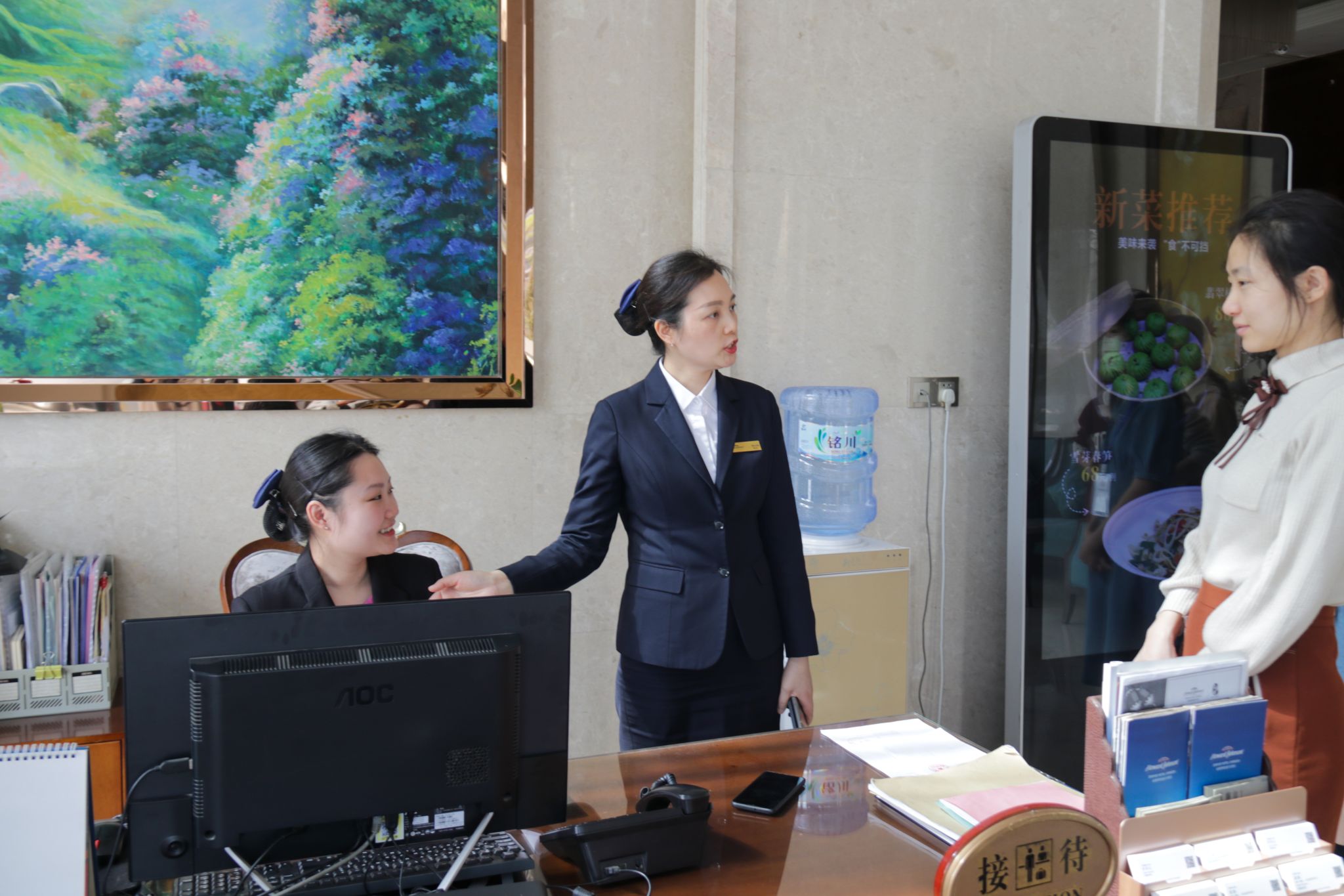 在本次活动中,学生首先参观了尊悦豪生酒店,了解酒店各部门运行模式。在酒店负责人的带领下,学生们参观宴会厅、餐厅、客房、办公区等,负责人就酒店桌椅摆放、客房设置、服务标准与服务流程、部门架构与漫蛙漫画展开深入介绍。其中,酒店经理现身说法,介绍自己的“专业选择—职业选择—晋升发展”经历,使学生们深刻认识到要不断提高综合素质、树立积极的就业观,从更长远视角看待当下的就业选择和职业发展,才能走出自己的职业道路。