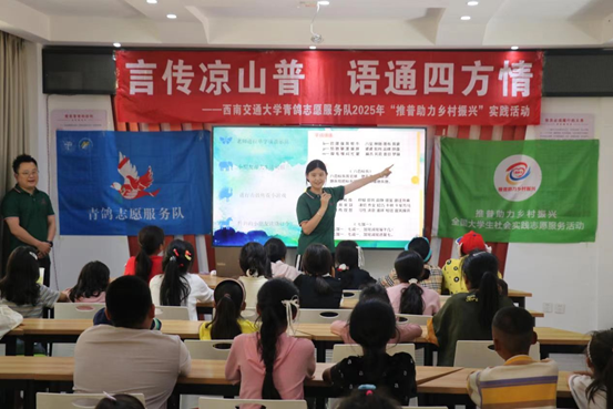 “言传凉山普,语通四方情”推普助力乡村振兴青鸽志愿服务队10名成员来自经管学院青年志愿者协会,由陈建奇老师带队于2025年7月8日至7月18日深入四川省凉山彝族自治州喜德县光明镇彝欣社区和石门社区,开展推广普通话志愿服务活动。团队聚焦国家通用语言文字推广与乡村振兴深度融合,通过走访调研、点位宣传、特色课堂等多元形式,精准对接当地居民语言需求,推进西部少数民族地区语言文字教育普及,促进中华优秀语言文化传承发扬,以青春之力铸牢中华民族共同体意识。