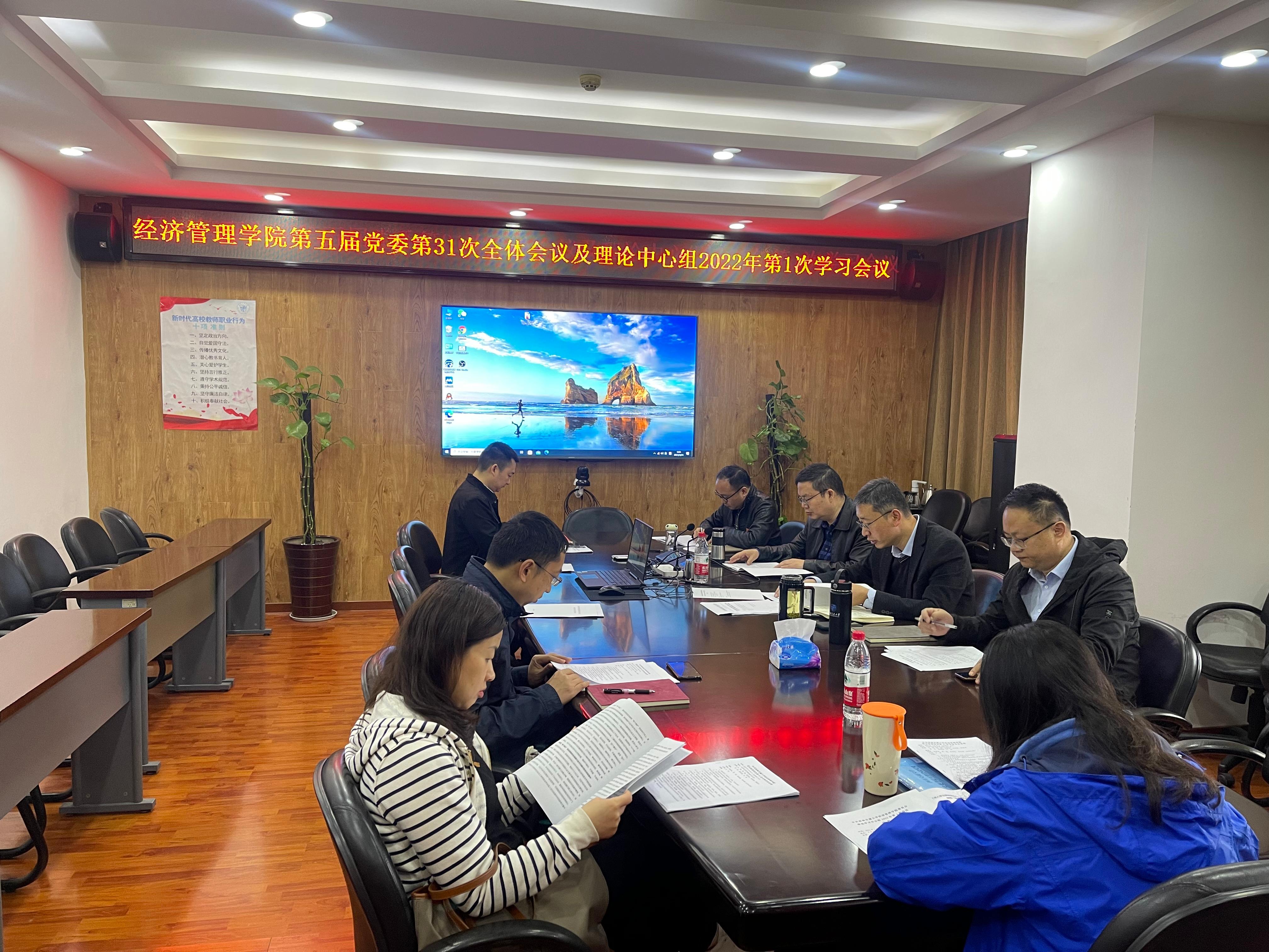 2022年3月24日上午9:00,学院第五届党委2022年第1次理论学习中心组学习、第31次全体会议在九里校区零号楼0607会议室召开。会议由学院党委书记王斌主持。