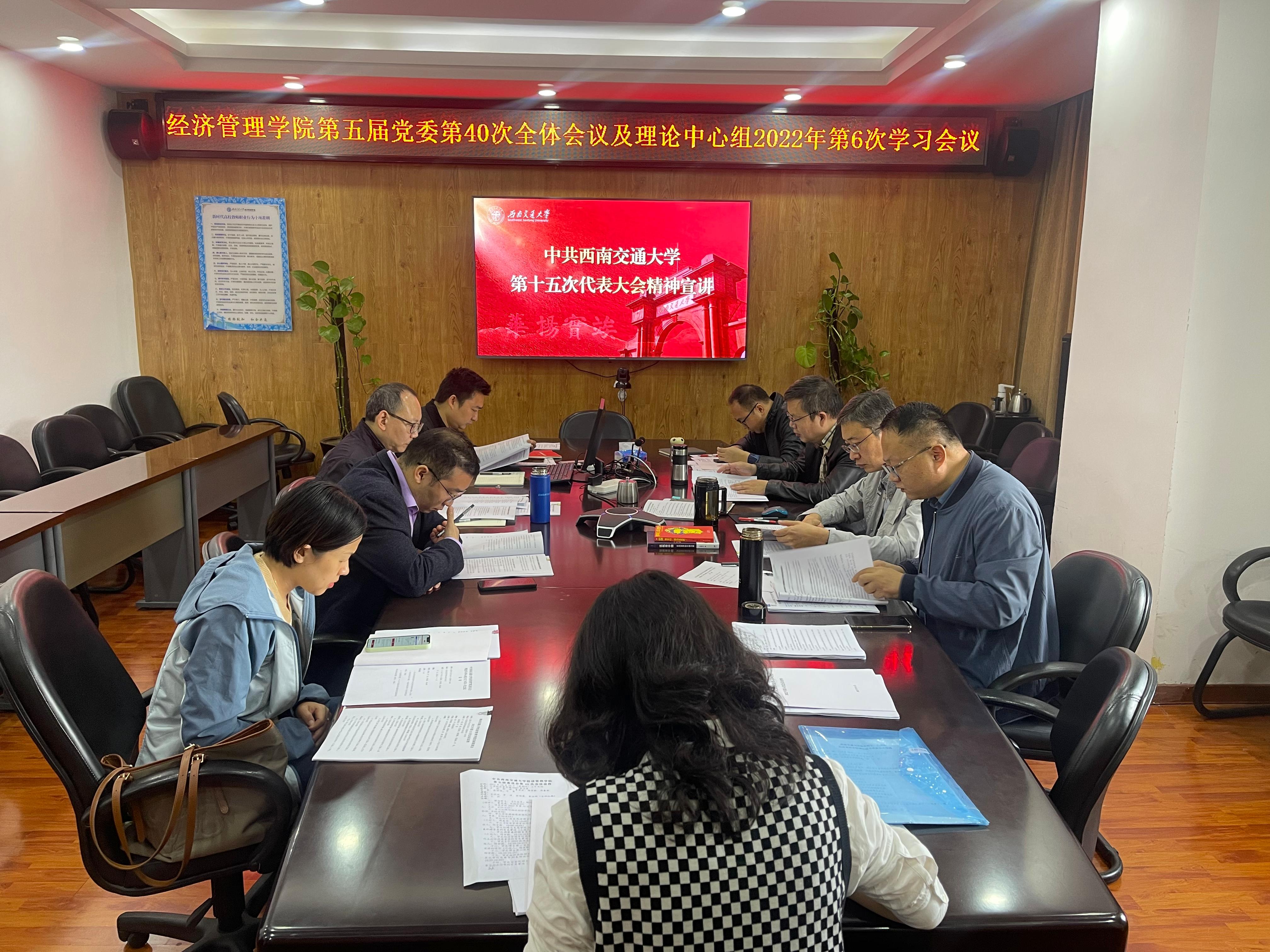 2022年10月20日上午9:00,学院第五届党委2022年第6次理论学习中心组学习、第40次全体会议在九里校区零号楼0607会议室召开。会议由党委书记王斌主持。