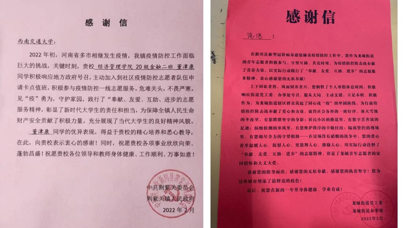 图7 抗 “疫”感谢信及志愿服务证明