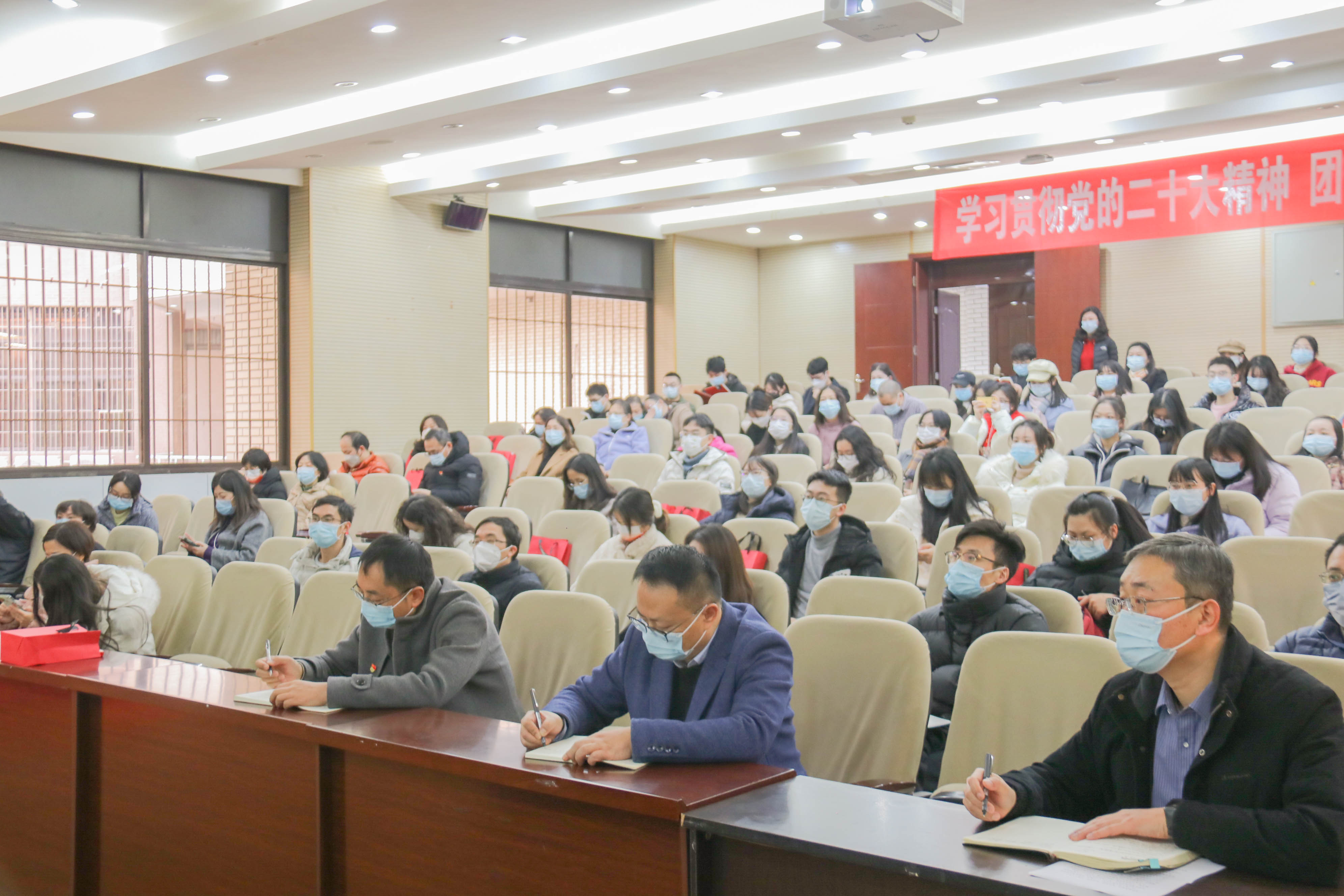 王斌在报告会主持中指出,刘占祥教授的专题辅导报告深入浅出、入心入脑,希望全院师生认真学习和深入贯彻落实党的二十大精神,希望全院师生团结一心,自信自强、守正创新,踔厉奋发、勇毅前行,全力推进学院各项工作又好又快发展,为实现党的第二个百年奋斗目标、共同把中国建设成为富强民主文明和谐美丽的社会主义现代化强国做出更多更大的贡献。