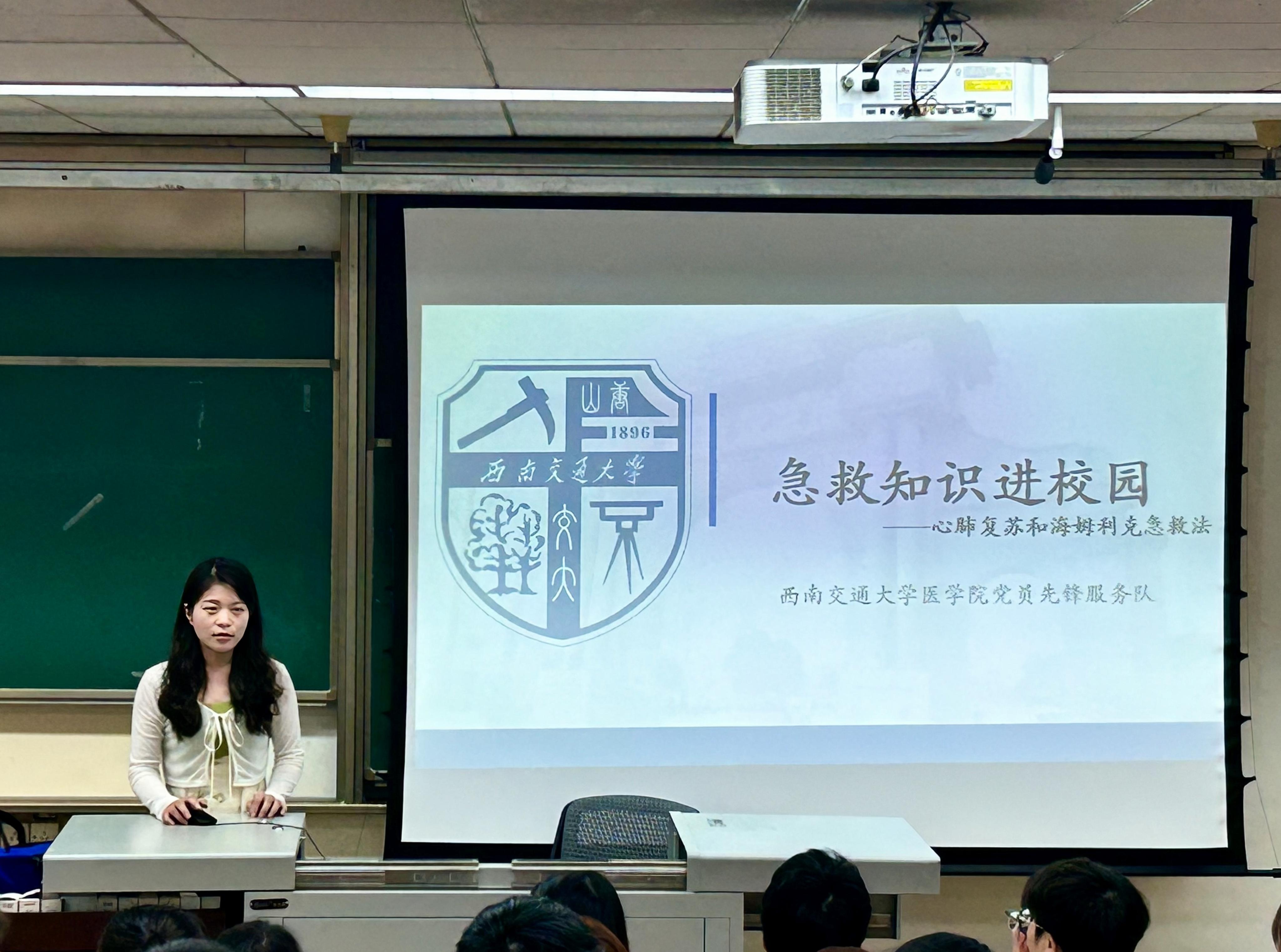 4月20日,支部举行“守护健康践初心 ‘救’在身边担使命”急救知识进校园活动,加强急救知识普及,增强生命意识,掌握基本急救方法。支部与西南交通大学医学院党员先锋服务队开展联合共建,教授支部成员心肺复苏基本方法和“海姆利克”急救法。医学院同志进行急救过程完整演示,参加的同学上台亲身体验、实践,主讲人悉心指导。活动帮助支部成员提高突发意外伤害应急处置能力,在未来遇到紧急情况时挺身而出、冷静应对、科学自救,把急救知识和技能传播给更多的人,弘扬“人人学急救,急救为人人”新时代文明新风尚。