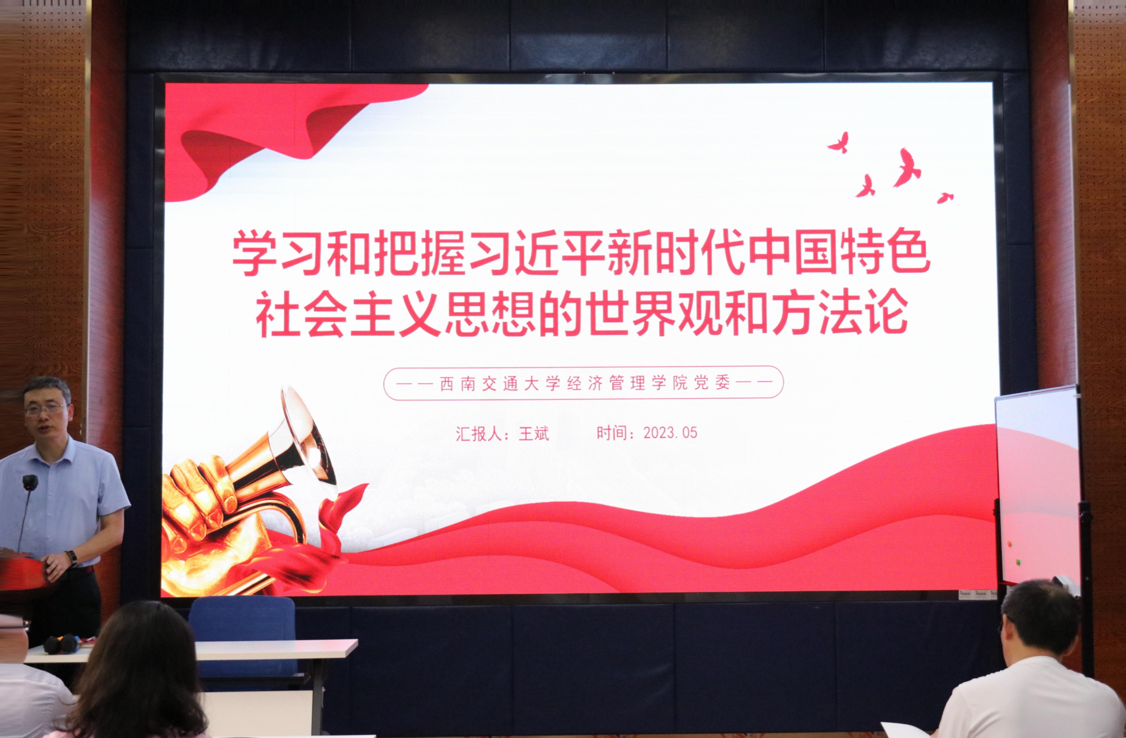 为扎实深入开展学习贯彻习近平新时代中国特色社会主义思想主题教育”,2023年5月19日下午,经济管理学院党委书记王斌讲授“学习和把握习近平新时代中国特色社会主义思想的世界观和方法论”题党课。学院领导班子成员和师生各党支部书记、委员参加了本次学习。